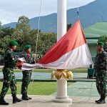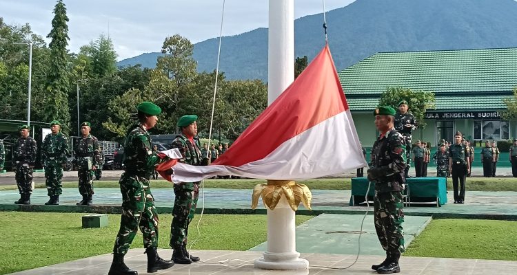 Tanggamus – Kodim 0424/Tanggamus melaksanakan Upacara Bendera Bulanan yang digelar di Lapangan