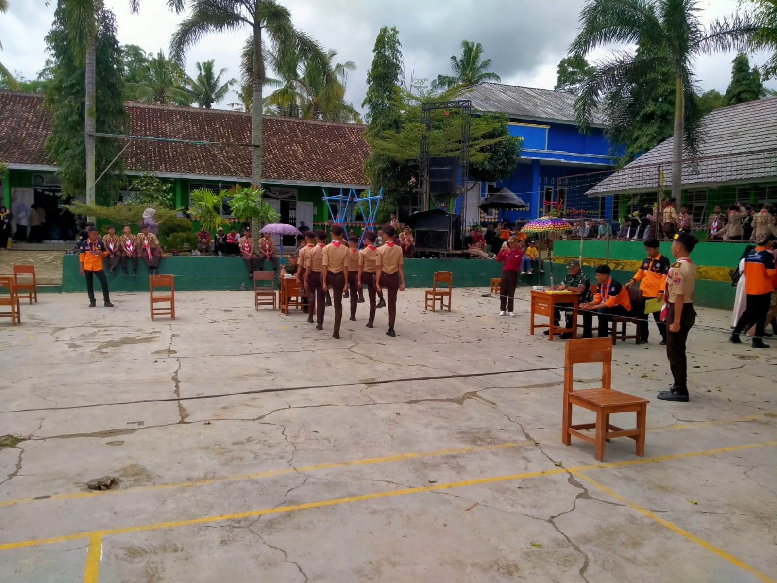Anggota Koramil 424 – 04/ Talang Padang, Peltu Istiyar Jauhari beserta 9 anggota melaksanakan Penilaian Lomba PBB antar Kelas di Halaman SMA Negeri 1 Sumberjo, Pekon Simpang Kanan, Kec. Sumberjo, Kab. Tanggamus. Minggu (26/01/2025).