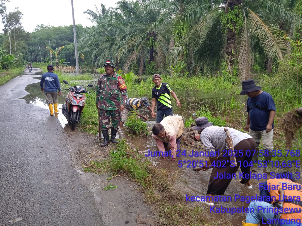 Gotong – royong ini diikuti pula oleh Babinsa Koramil 424 – 05/ Pagelaran, Pelda Abdi Rojali. Kegiatan ini berupa pembersihan saluran parit atau drainase di Pekon Lugusari, Kec. Pagelaran, Kab. Pringsewu. Sabtu (25/01/2025).