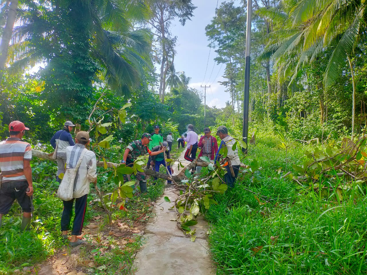 Kondisi cuaca yang tidak menentu dan sering terjadi hujan disertai angin kencang menimbulkan banyak kerawanan, terutama pohon tumbang. Mengantisipasi hal tersebut, Babinsa bersama warga bergotong-royong menebang pohon di pinggir jalan, sebab dikhawatirkan dapat membahayakan pengguna jalan.