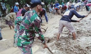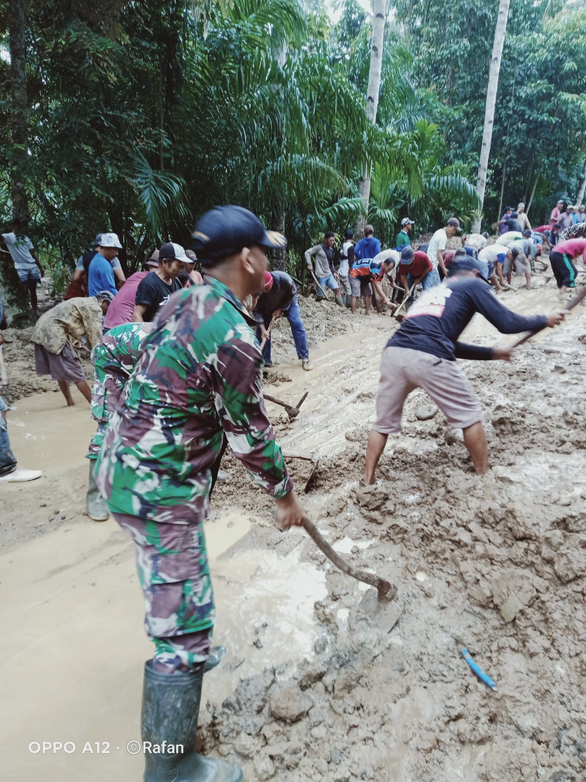 Babinsa Koramil 424-03/Kotaagung Sertu Ijum bersama 2 orang anggota melaksanakan Gotong Royong Bersihkan Jalan Berlumpur Kecamatan Pematang Sawah bersama warga dan muspika Kecamatan Pematangsawah. Jum’at (07/07).