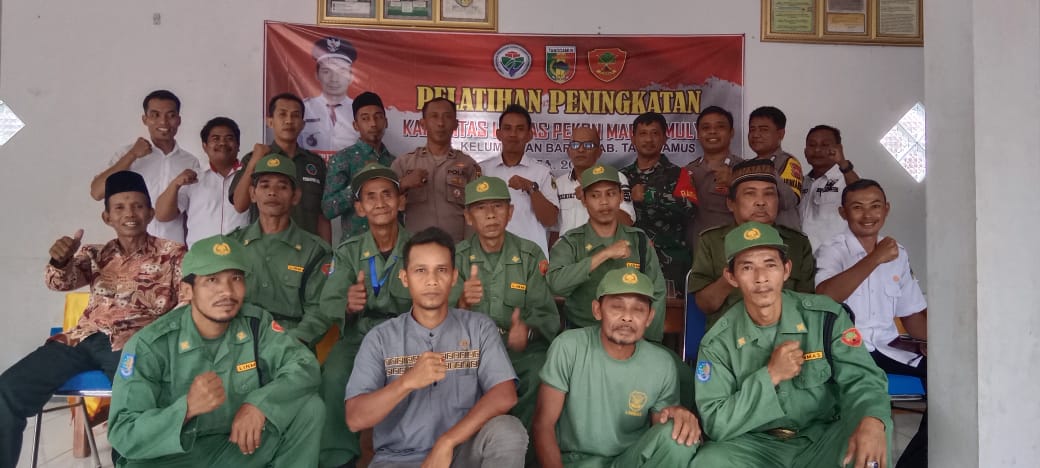 Babinsa Koramil 01/Cukuhbalak Kodim 0424/Tanggamus Sertu Nur Fitra Jaya memberikan materi dalam pelatihan Linmas untuk meningkatkan kapasitas anggota Linmas,di Pekon Marga Mulya Kec. Kelumbayan Kab.Tanggamus. Selasa (07/11/2023).