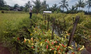 Babinsa Koramil 03/Kotaagung Kodim 0424/Tanggamus Serda Antoni Bersama Dinas Pertanian Meninjau Tanaman Cabe milik warga Pekon Kerta Kec. Kotaagung Timur Kab. Tanggamus. Jum’at (12/1/24).