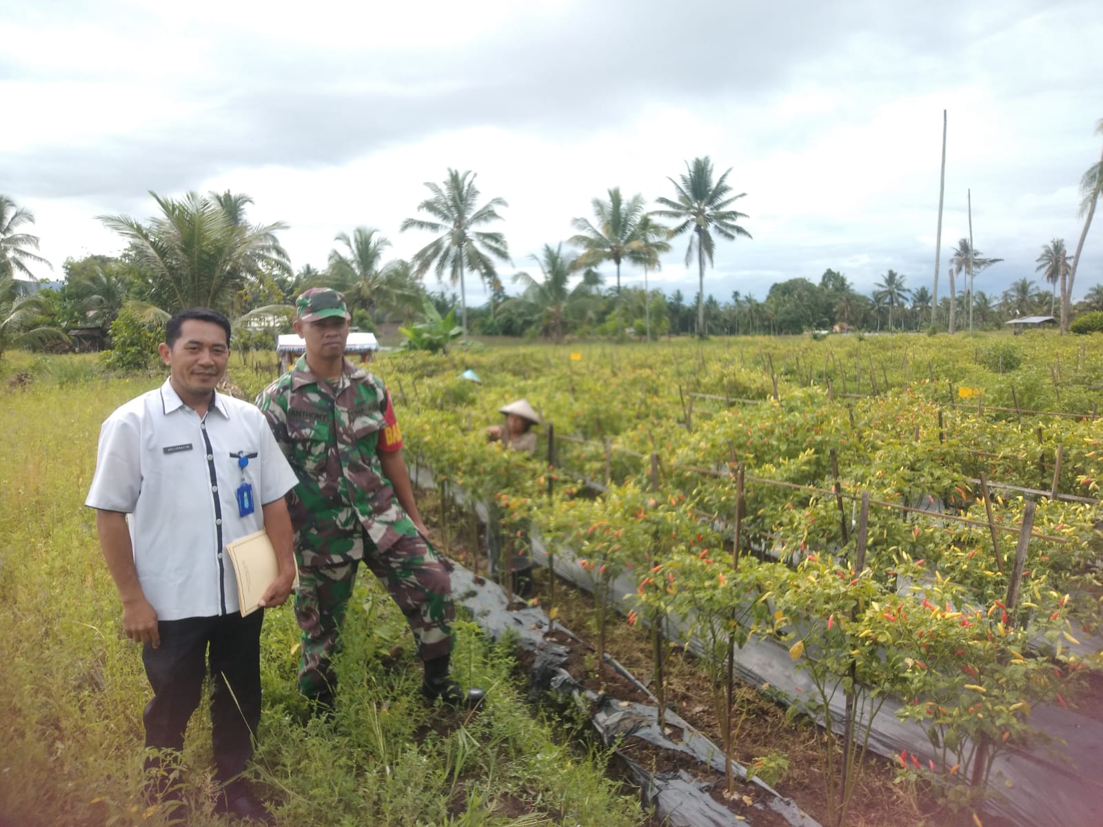 Babinsa Koramil 03/Kotaagung Kodim 0424/Tanggamus Serda Antoni Bersama Dinas Pertanian Meninjau Tanaman Cabe milik warga Pekon Kerta Kec. Kotaagung Timur Kab. Tanggamus. Jum’at (12/1/24).