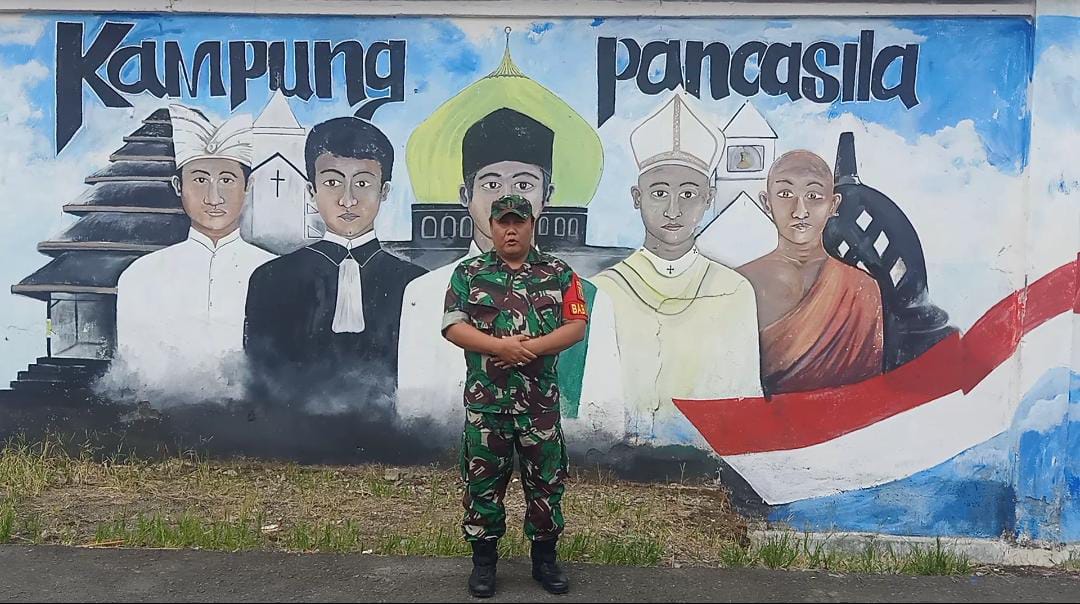 Dalam rangka menyukseskan Kampung Pancasila Peltu Zailani Anggota Koramil 03/Kotaagung mengecek kampung pancasila di Kelurahan Pasar Madang. Sabtu (07/10/2023).