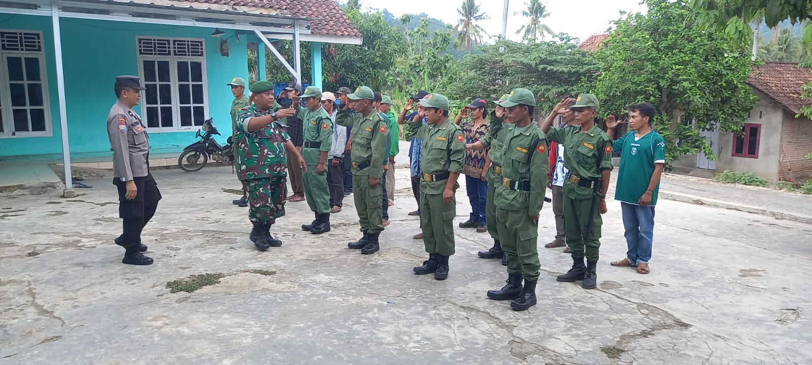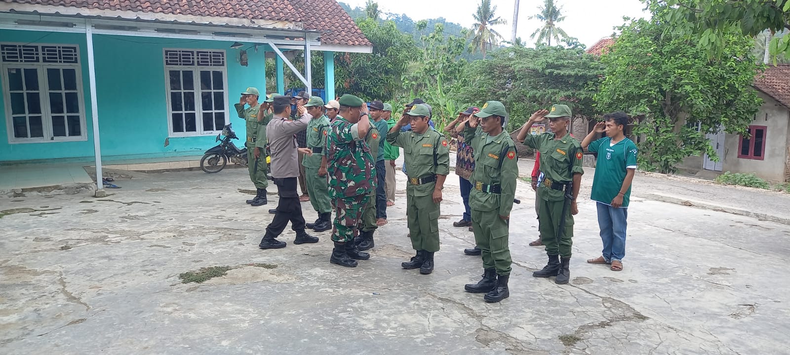 Babinsa Koramil 05/Pagelaran Kodim 0424/Tanggamus Sertu Saiful Anwar dan Bhabinkamtibmas malatih Linmas untuk membentuk dan meningkatkan Disiplin bertempay dipekon Tanjung Agung, Kecamatan Pagelaran. Senin (11/12/2023).