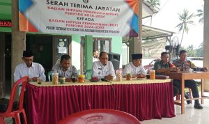 Babinsa Koramil 09/Sukoharjo Koptu Juned mewakili Danramil menghadiri undangan serah terima jabatan Ketua BHP (Badan Hippun Pemekonan) BHP di Pekon Totokarto kec.Adiluwih kec. Pringsewu. Kamis (18/4/2024).