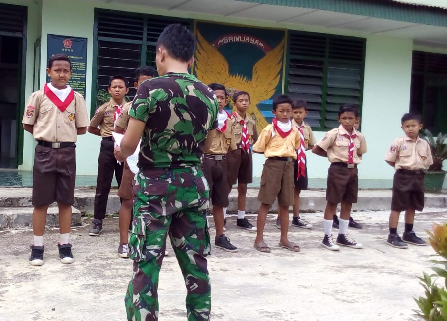 Babinsa Koramil 424-01/Cukuh Balak Peltu. Ady y memberikan pelatihan PBB dan Pramuka pada anak SDN 1 Pekon Ampai. Bertempat di halaman Koramil 424-01/Cukuh Balak, Kec. Limau, Kab. Tanggamus, Minggu (12/03/2023).
