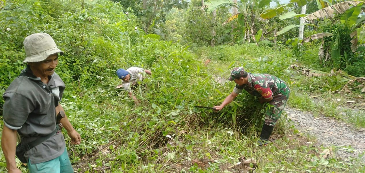 Babinsa Koramil 424-01/Cukuh Balak Bersama Warga Gotong-royong Bersihkan Jalan Perkebunan
