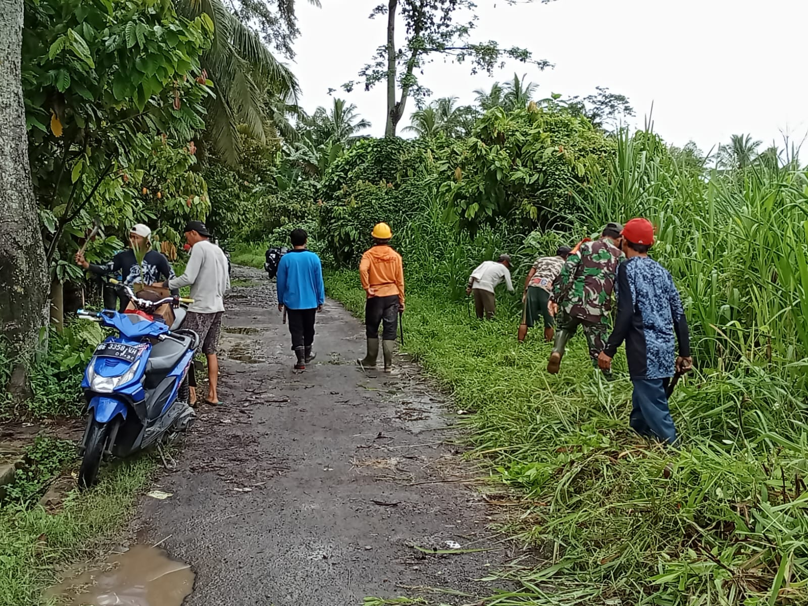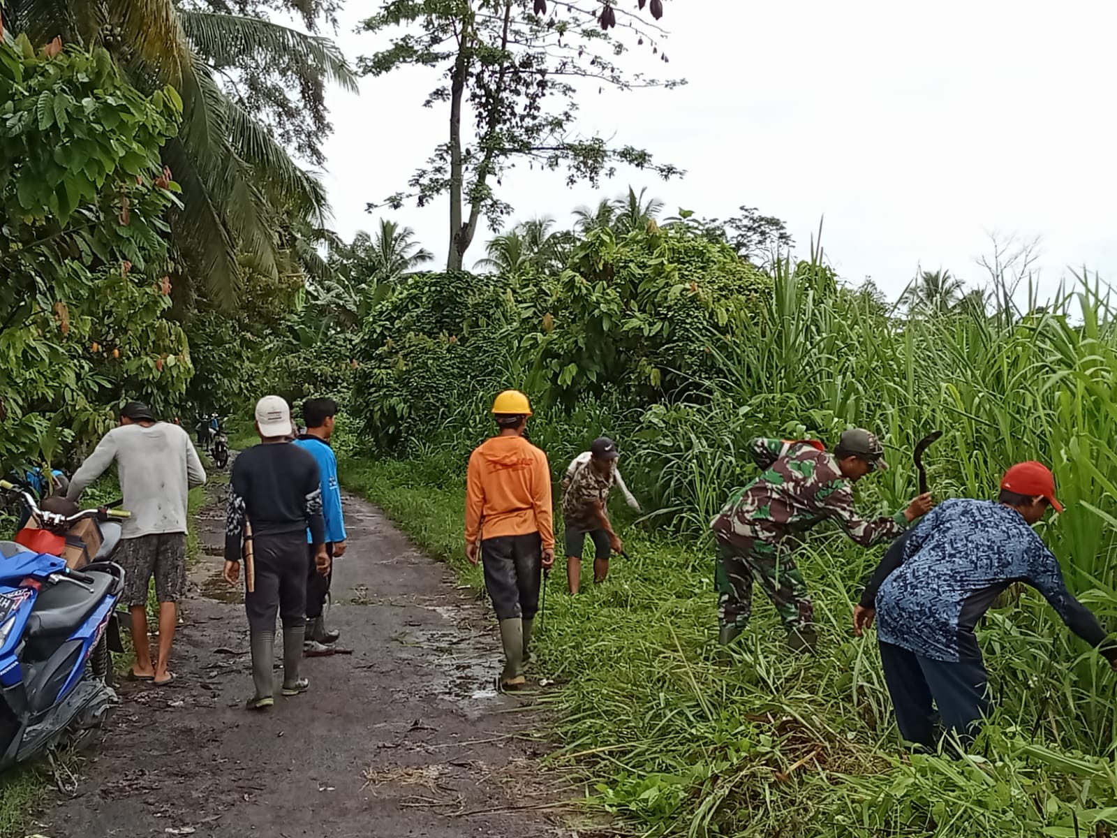 Babinsa Koramil 424-02/Wonosobo Sertu Hayubi bersama masyarakat melaksanakan gotong royong pembersihan ruas kanan kiri jalan di Pekon Sinar Bangun, Kec. Bandar Negri Semueong, Kab. Tanggamus, Minggu (03/12/2023).