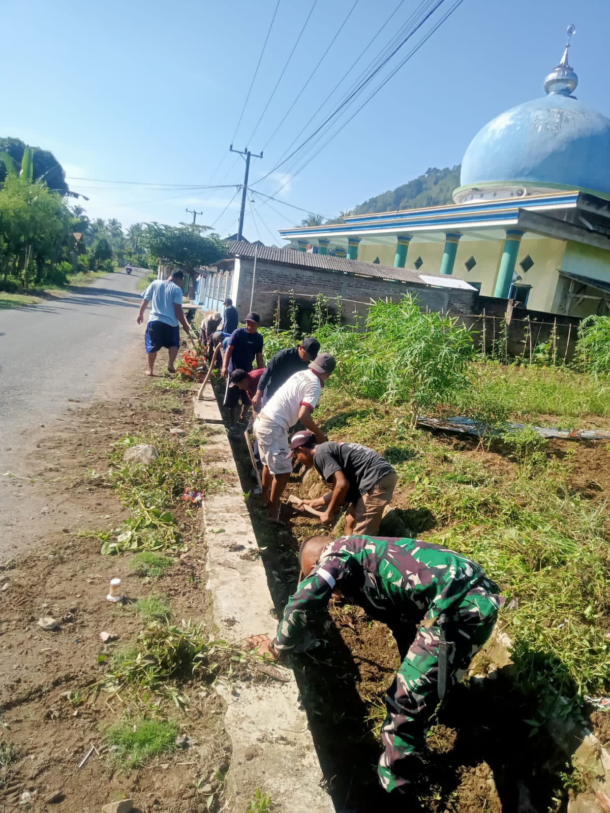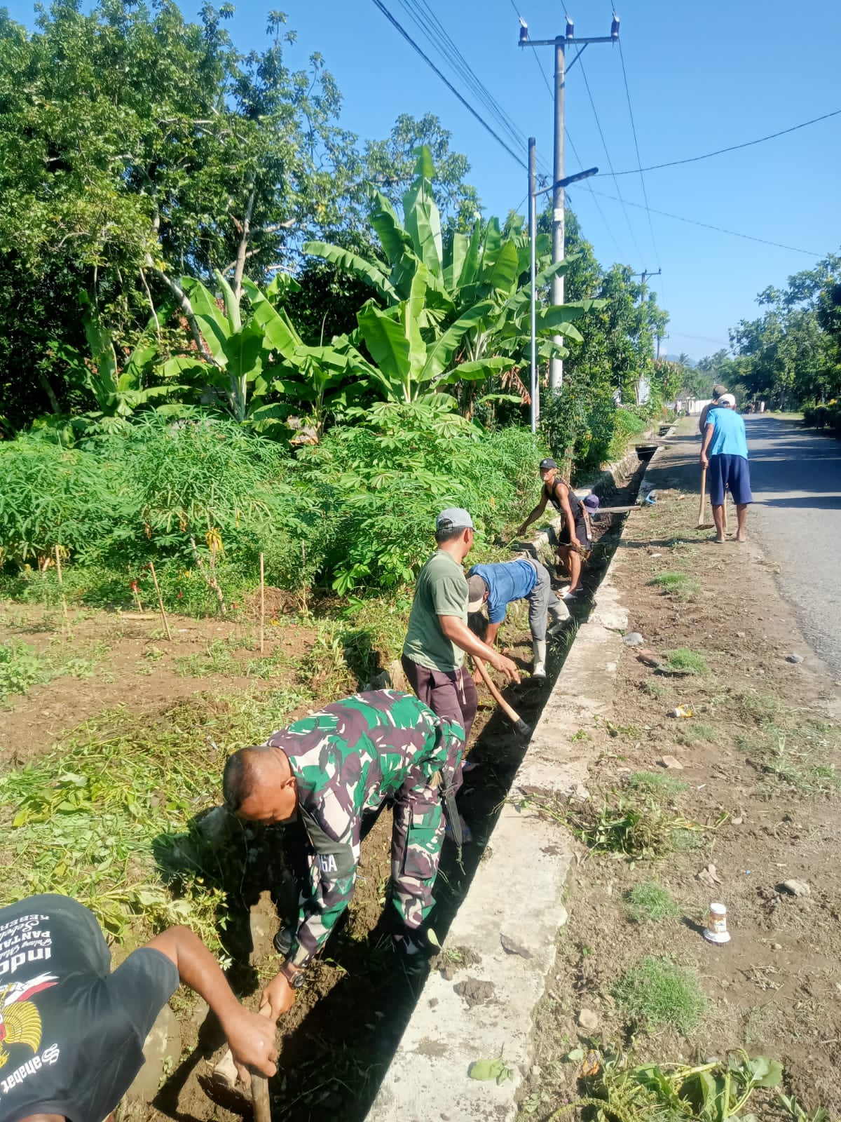 Serka Bunyamin menyampaikan bahwa kegiatan gotong royong ini merupakan salah satu bentuk kepedulian TNI terhadap lingkungan sekaligus mempererat hubungan antara aparat kewilayahan dengan masyarakat.