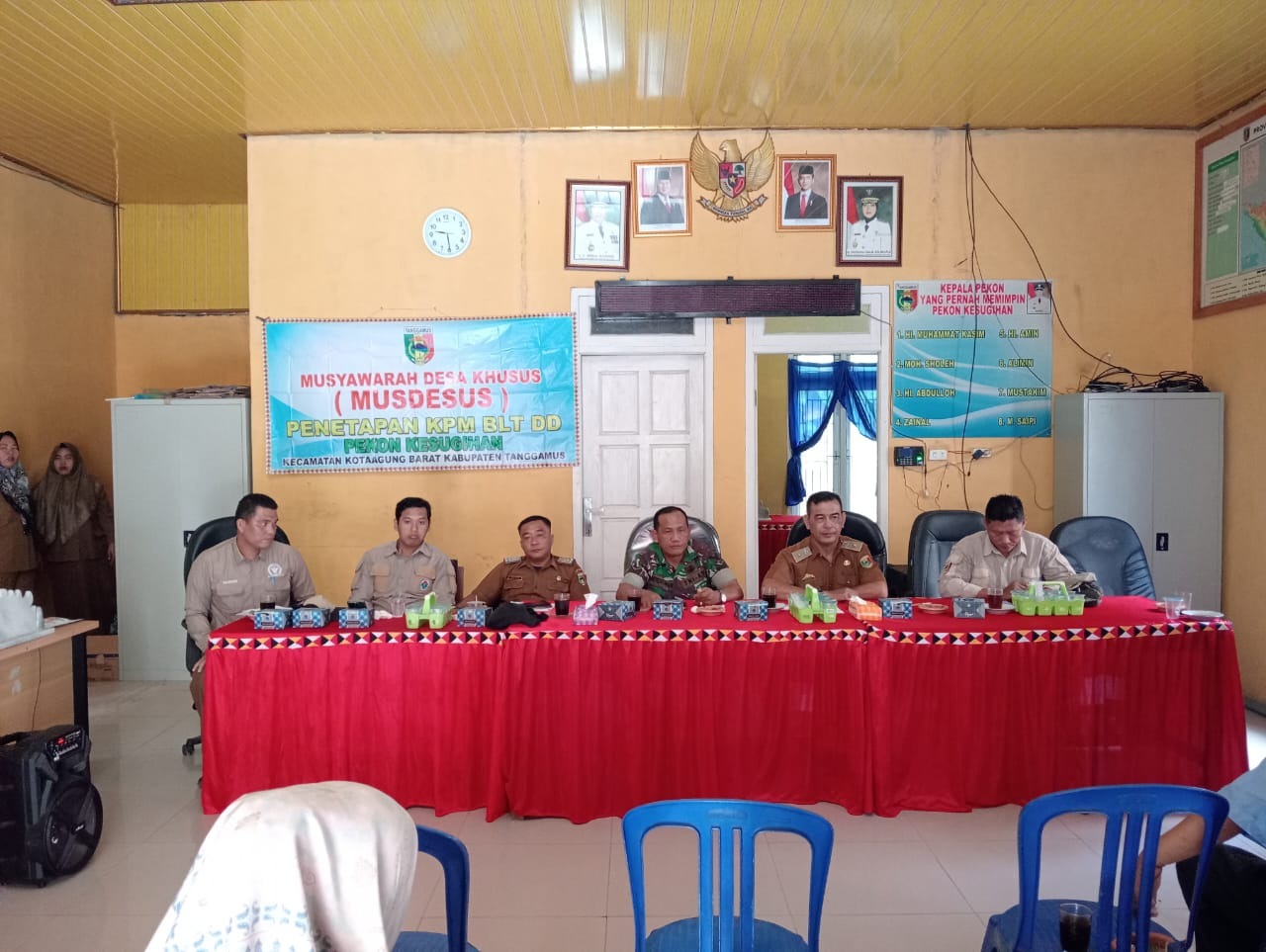 Babinsa Koramil 424 – 03/ Kota Agung, Serma Hendrawan menghadiri undangan Musdesus pembahasan dan penetapan KPM BLT – DD bertempat di Aula Kantor Pekon Kesugihan, Kec. Kota Agung Barat, Kab. Tanggamus. Selasa (19/11/2024).