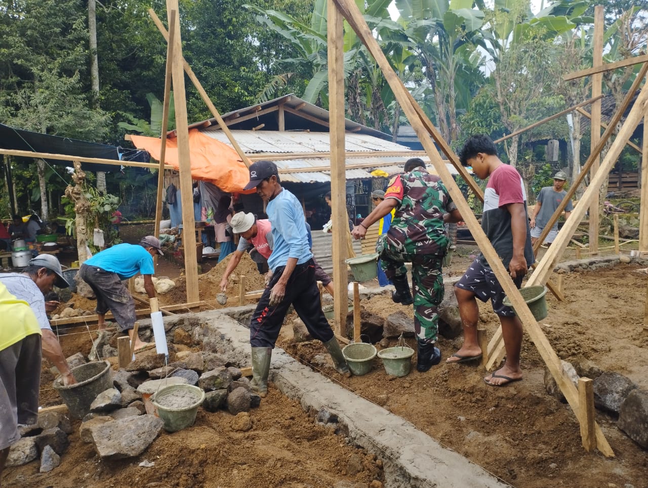 Babinsa Koramil 424-04/Talang Padang Gotong-royong Cor Pondasi Rumah Warga