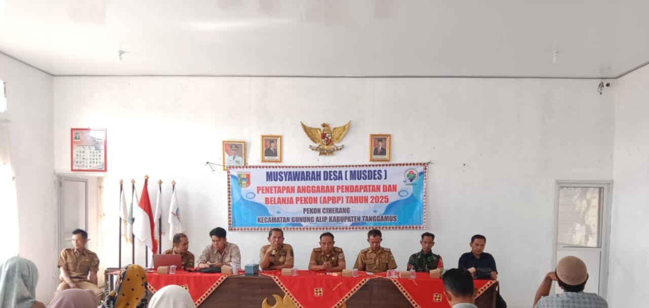 Babinsa Koramil 424-04/Talang Padang Koptu Adi Kurniawan menghadiri Musyawarah Desa (Musdes) guna untuk menetapkan Anggaran Pendapatan dan Belanja Desa (APBDes) Tahun Anggaran 2025 yang akan menjadi dasar pelaksanaan pembangunan desa bertempat di Pekon Ciherang, Kec. Gunung Alip, Kab. Tanggamus, Selasa (07/01/2025).