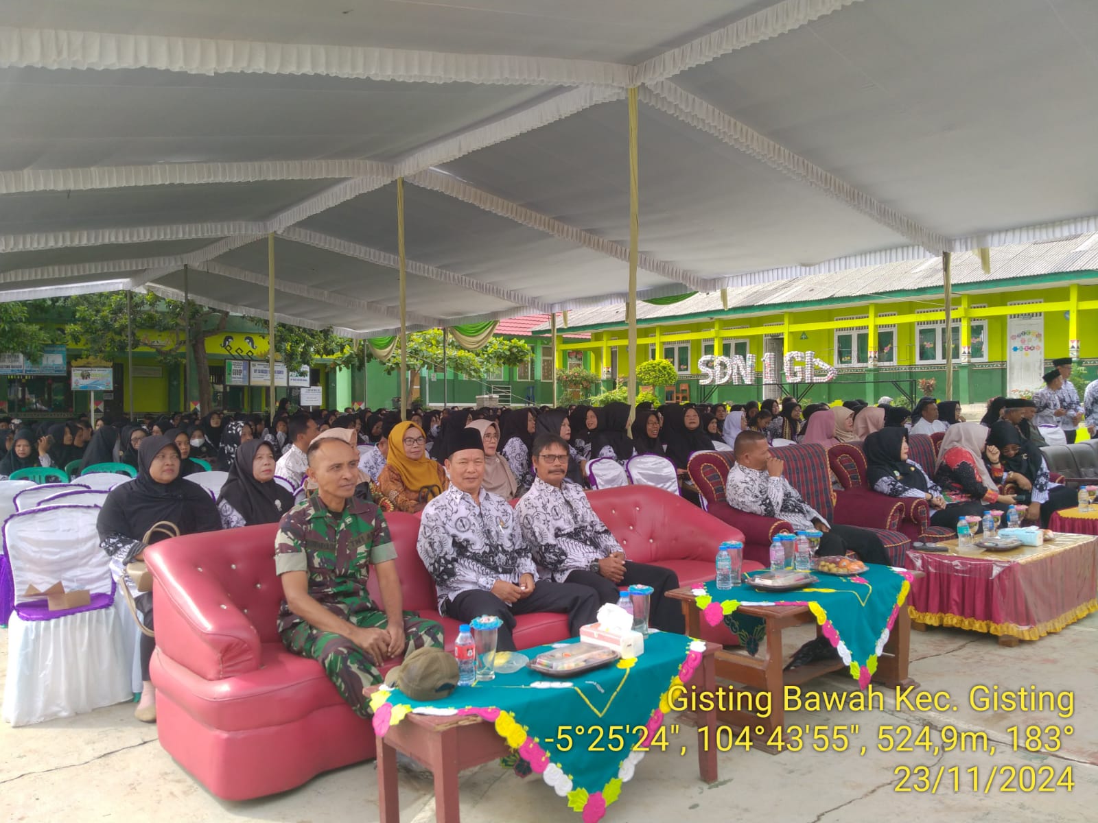 Sebagai bentuk penghormatan kepada Guru dan PGRI, Babinsa Koramil 424 – 04/ Talang Padang, Peltu Nurhayadi menghadiri undangan dalam rangka HUT PGRI Ke – 79 dan Hari Guru Nasional Tahun 2024, bertempat di SDN 1 Gisting, Kec. Gisting, Kab. Tanggamus. Minggu (24/11/2024).