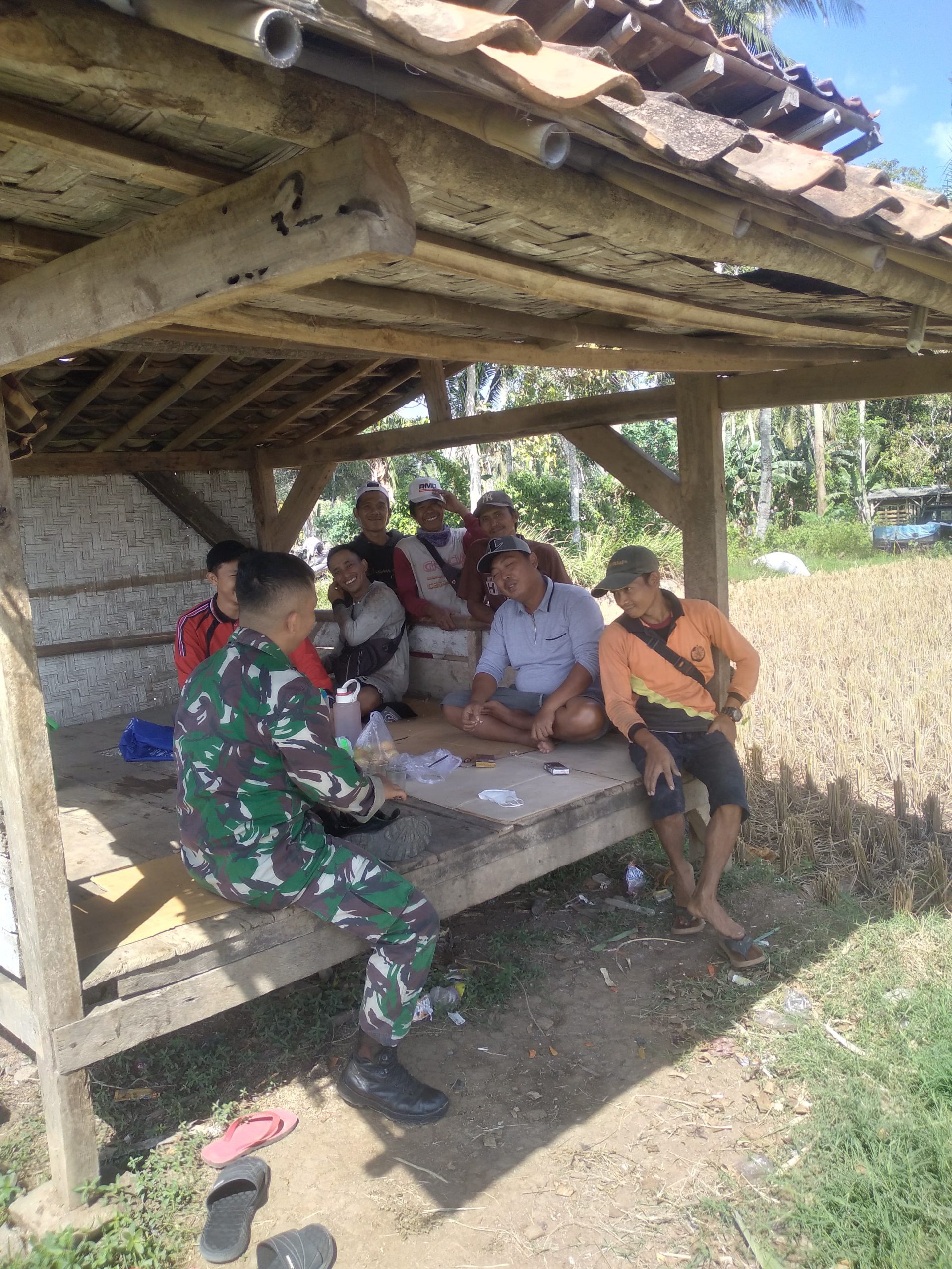 Babinsa Koramil 424-04/Talang Padang Serda Dafit menggunakan Pos Ronda untuk komsos dengan warga binaan yang bertempat di Pekon Kejayaan, Kec. Talang Padang, Kab. Tanggamus, Sabtu (28/12/2024).