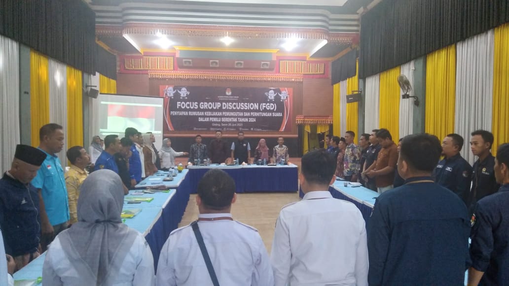 Fokus grup discussion (FGD) merupakan penyiapan rumusan tahapan pemungutan dan penghitungan suara pada Pemilu serentak tahun 2024 serta FGD ini merupakan ruang yang kami sediakan agar Peserta FGD ini dapat memberikan masukan dan tanggapan terkait dengan proses pemungutan dan perhitungan suara Pemilu serentak tahun 2024.
