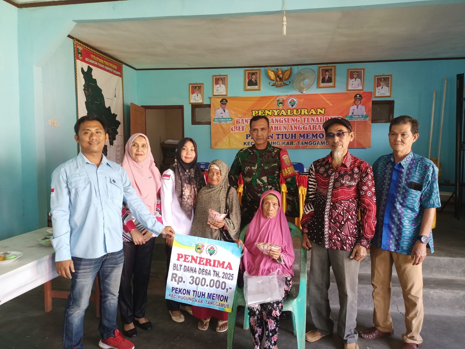 Babinsa Koramil 424-05/Pagelaran Serma Ruslan AG mendampingi penyaluran BLT-DD tahun anggaran 2025 bertempat di Pekon Tiuh Memon, Kec. Pugung, Kab. Tanggamus, Jum’at (11/04/2025).