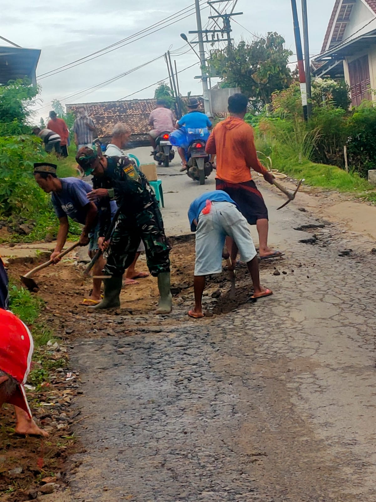 Babinsa Koramil 424 – 05/ Pagelaran, Pelda Reno. S melaksanakan gotong – royong bersama masyarakat memperbaiki jalan yang rusak di Pekon Pasir Ukir, Kec. Pagelaran, Kab. Pringsewu. Sabtu (30/11/2024).
