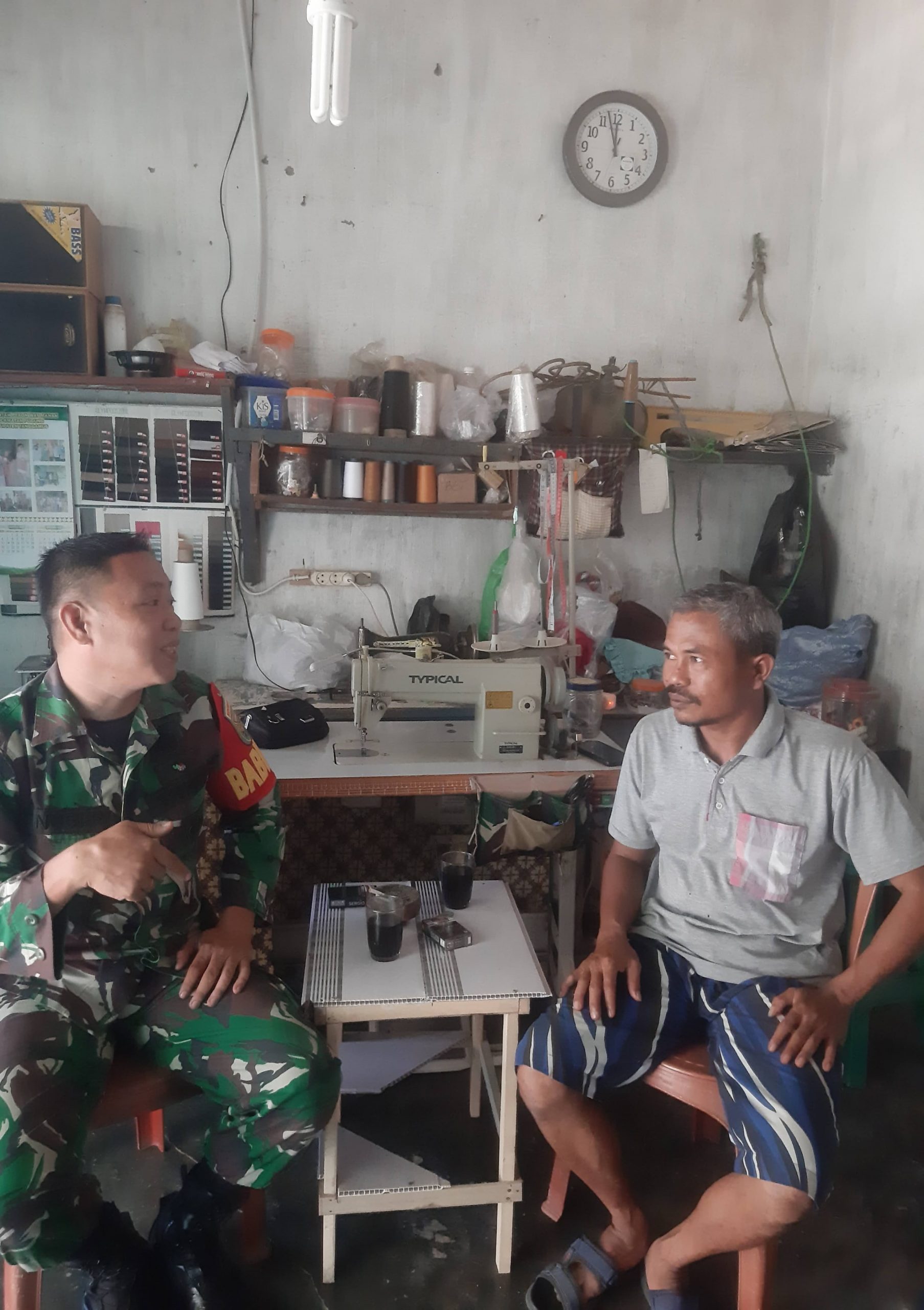 Upaya membangun kedekatan bersama warga di desa binaan, terus dilakukan oleh para anggota Babinsa seperti pada pelaksanaan komunikasi sosial salah satunya kepada warga yang bekerja sebagai penjahit pakaian.