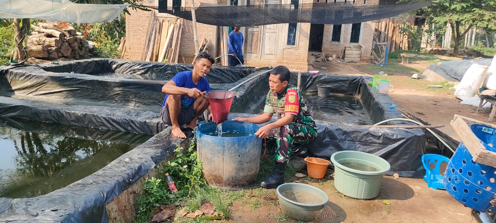 Babinsa Koramil 424-05 Pagelaran Serda Indra Setyadi melaksanakan kegiatan pendampingan budidaya ikan Lele milik Suriadi (43) bertempat di Pekon Sidodadi, Kec. Pagelaran, Kab. Pringsewu, Rabu (15/01/2025).