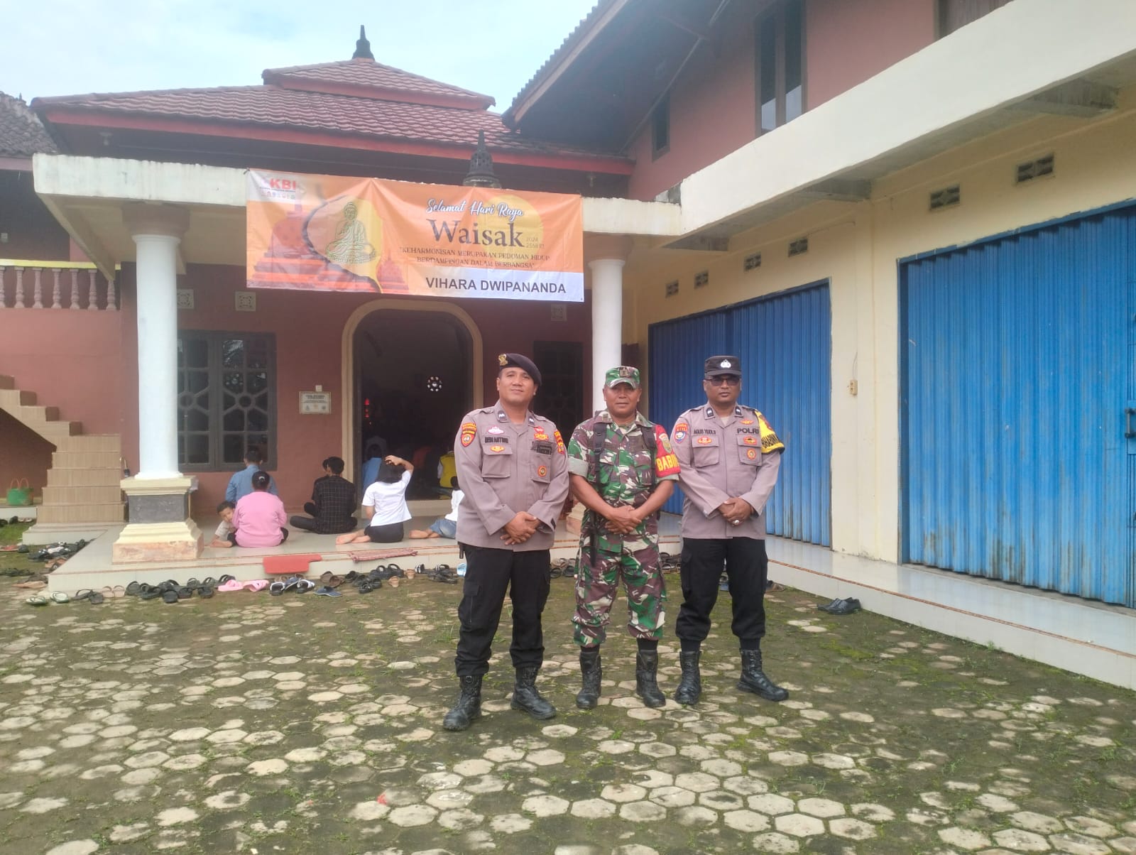 Babinsa Koramil 424 – 05/ Pagelaran, Pelda Andi R, bersama anggota Polsek Pagelaran melaksanakan pemantauan sekaligus pengamanan Perayaan Hari Raya Waisak 2568 BE/ 2024 M yang diselenggarakan di di Pekon Fajar mulya, Kec. Pagelaran Utara, Kab. Pringsewu. Kamis (23/05/2024).