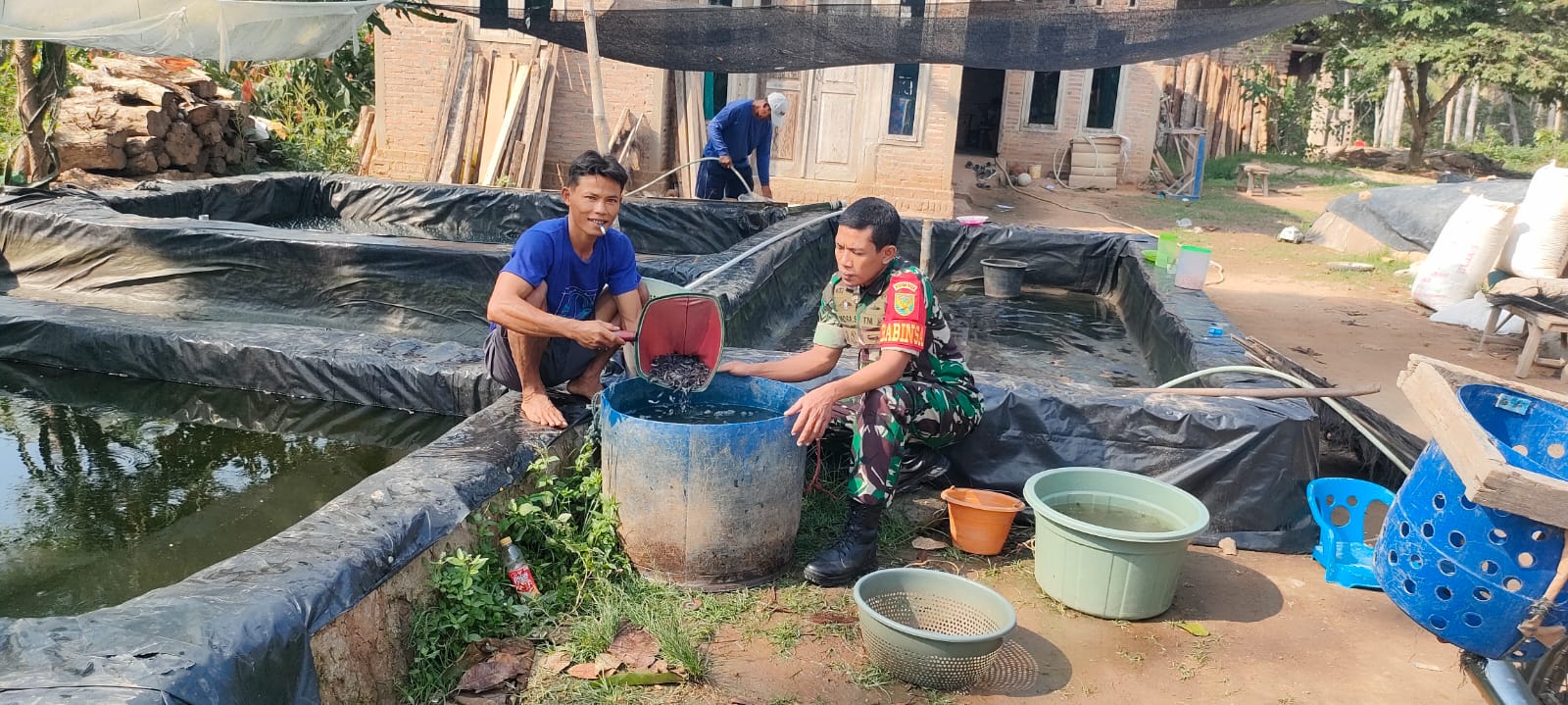 Kedatangan Babinsa Serda Indra ke tempat tersebut disambut baik serta diajak langsung melihat kolam yang dijadikan untuk budidaya ikan Lele.