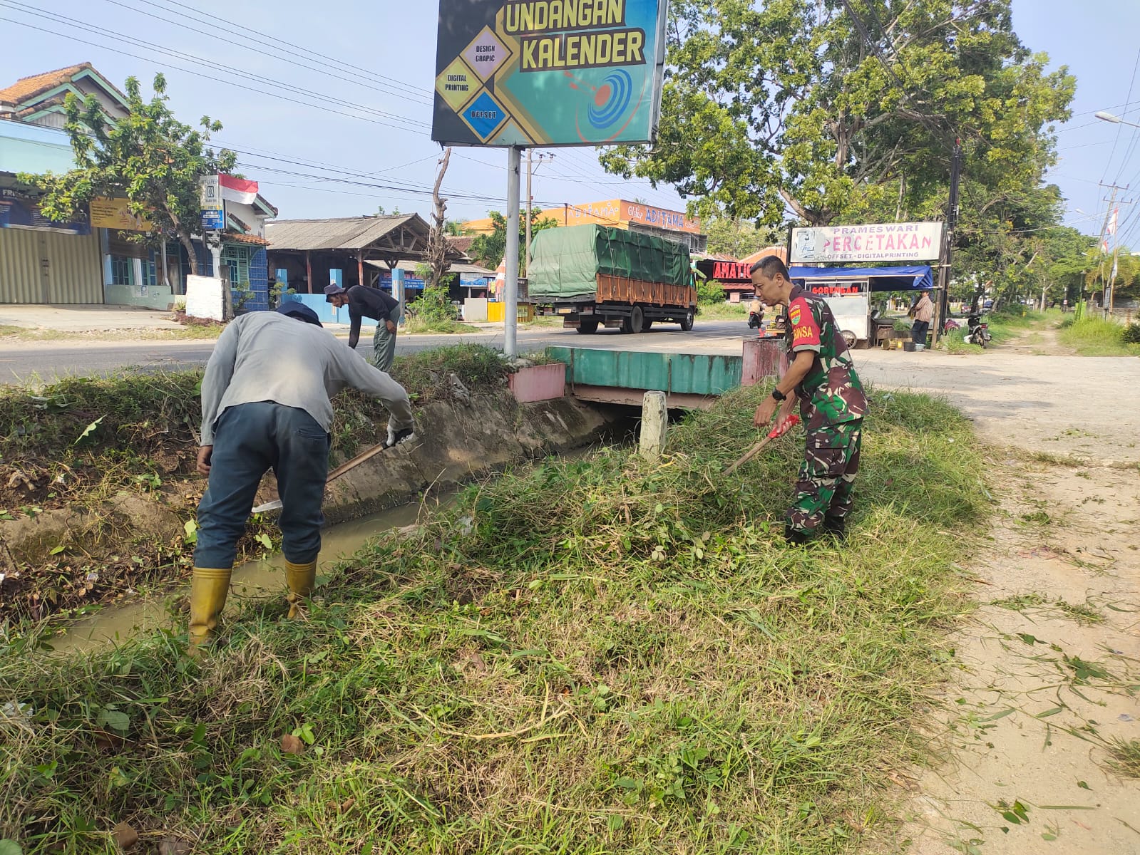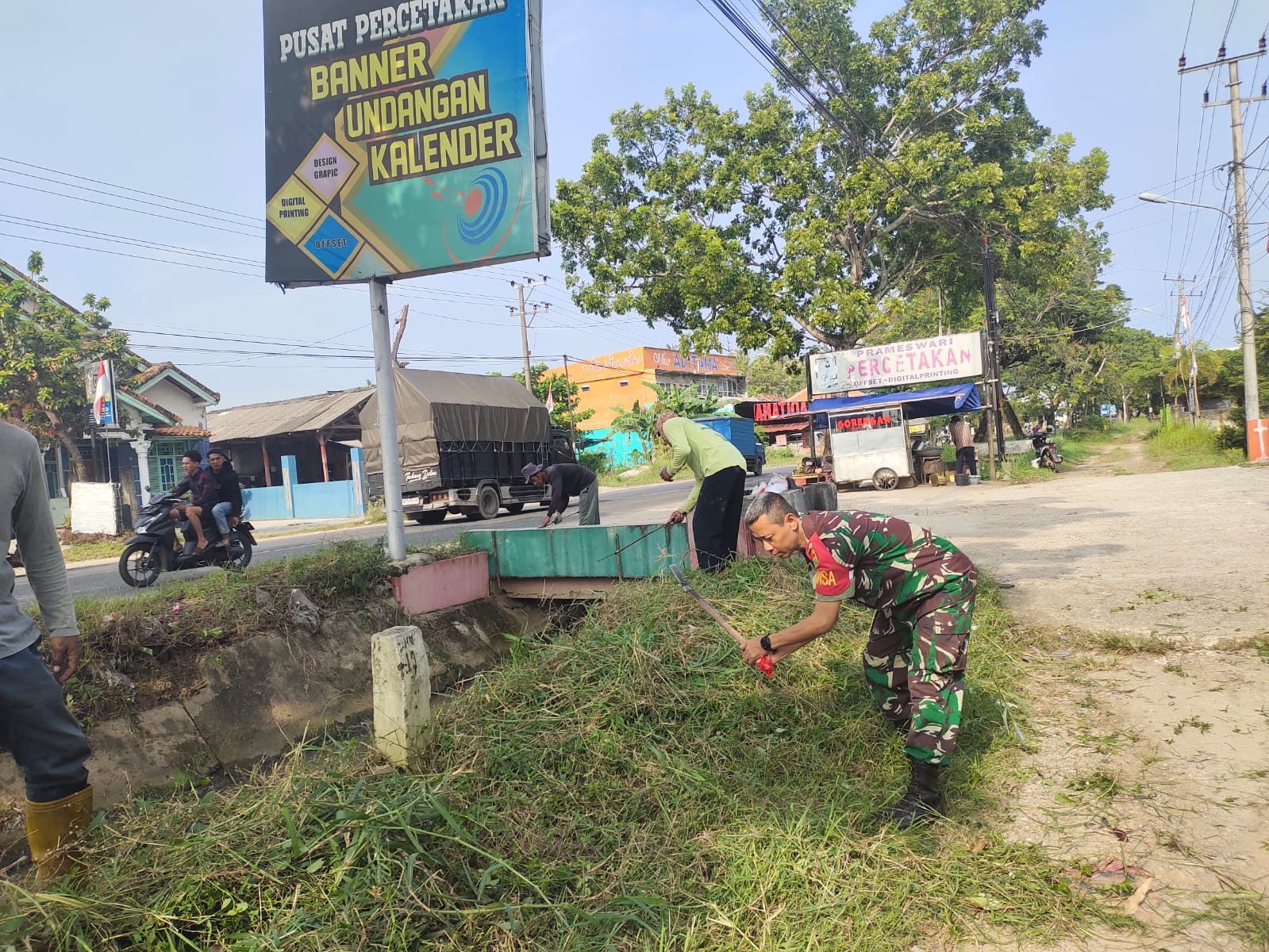 Pringsewu – Dalam rangka menjaga kebersihan dan keindahan lingkungan, Babinsa Koramil 424-06/Pringsewu Sertu Heri Iswanto bersama warga binaan melaksanakan kegiatan gotong royong pembersihan ruas jalan dari sampah dan rumput liar di Kelurahan Fajaresuk, Kecamatan Pringsewu, Kabupaten Pringsewu, Kamis (27/11/2025).