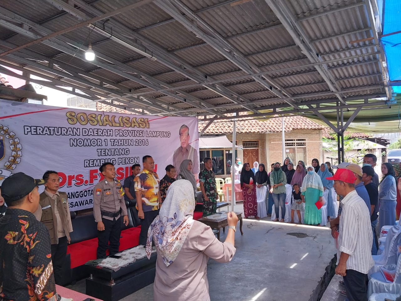 Babinsa Koramil 424-06/Pringsewu Sertu Anwari menghadiri kegiatan Sosialisasi Peraturan Daerah  No.1 tahun 2016 tentang Rembug Pekon, Dewan Perwakilan Rakyat Daerah (DPRD) oleh Anggota DRPD Provinsi Lampung Drs. FX. SIMAN dari Fraksi GOLKAR, Dapil 3 (Pringsewu, Pesawaran dan Metro), bertempat di kediaman Bapak Didin RT 2 LK 1 Kelurahan Pringsewu Utara, Kab. Pringsewu, Minggu (17/03/2024).