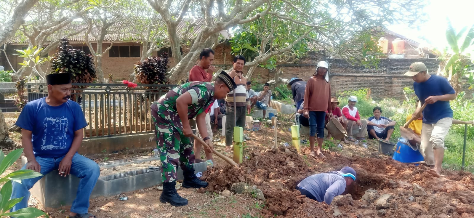 Babinsa Koramil 424-07/Gadingrejo Pelda Samijan bersama-sama masyarakat melaksanakan kegiatan pemakaman salah satu warganya yang meninggal dunia bertempat di tmp pekon wonodadi, Senin (11/09/2023).