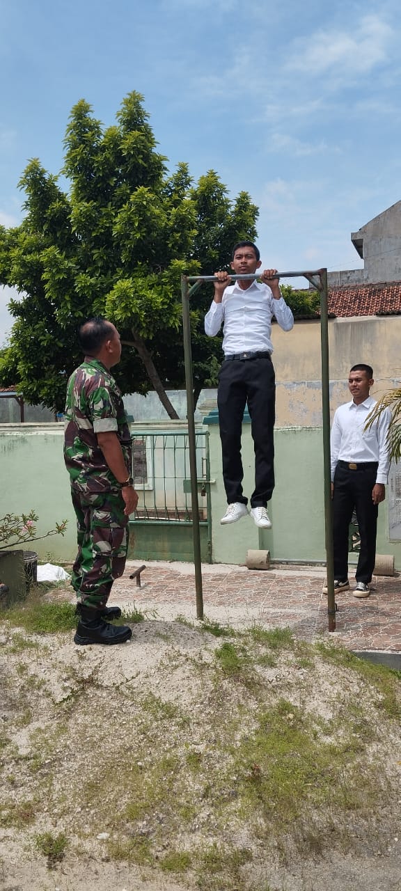 Bintara Pembina Desa (Babinsa) Koramil 424-07/Gadingrejo Sertu Hendra Gunawan melaksanakan pembinaan fisik kepada warga yang ingin mendaftar TNI -AD melalui test uji jasmani Pull Up dan Pus Up yang akan mengikuti tes Calon Tamtama PK TNI AD Gelumbang I TA 2025 bertempat di Makoramil 424-07/Gadingrejo, Selasa (14/01/2025).