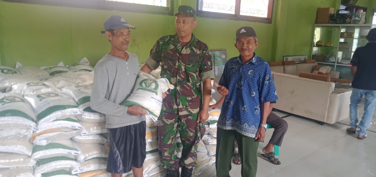 Babinsa Koramil 424-07/Gadingrejo Dampingi Pembagian Beras CBP di Pekon Tulung Agung