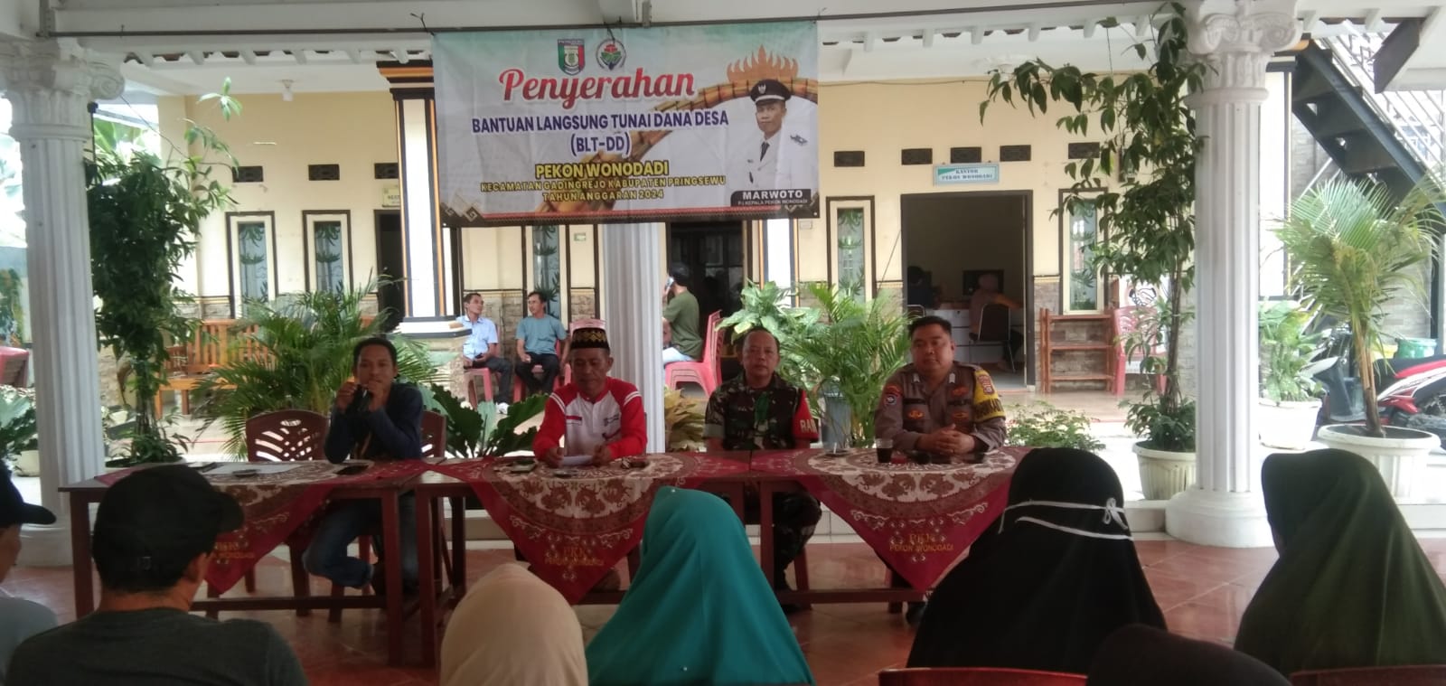 Pembagian BLT-DD secara simbolis kepada warga oleh Kepala Pekon Wonodadi yang didampingi oleh Babinsa, Bhabinkamtibmas dan dilanjutkan pembagian BLT-DD tersebut disesuaikan dengan undangan dari Desa secara bergiliran. Selama kegiatan berjalan lancar, tertib dan Aman.