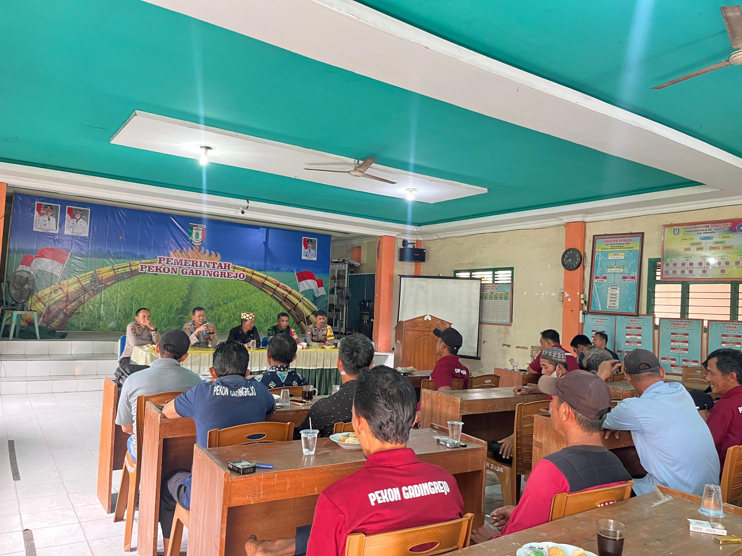 Pringsewu – Dalam rangka meningkatkan kesadaran dan partisipasi masyarakat terhadap keamanan dan ketertiban lingkungan, Babinsa Koramil 424-07/Gadingrejo, Koptu Agut S, menghadiri kegiatan sosialisasi Kamtibmas yang diselenggarakan oleh Polsek Gadingrejo, bertempat di Balai Pekon Gadingrejo, Kecamatan Gadingrejo, Kabupaten Pringsewu, Kamis (09/04/2026).