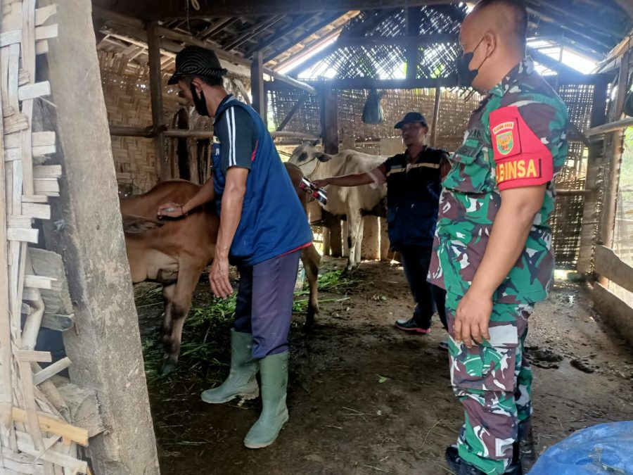 Pada pelaksanaannya Babinsa desa setempat, Sertu Dwi Hadi Sanjaya yang besirnergi dengan Dinas kesehatan peternakan tak ketinggalan turut hadir ditengah-tengah kegiatan itu, Bhabinkamtibmas dan aparatur pemerintah desa juga turut menyaksikan jalannya Vaksinasi PMK.
