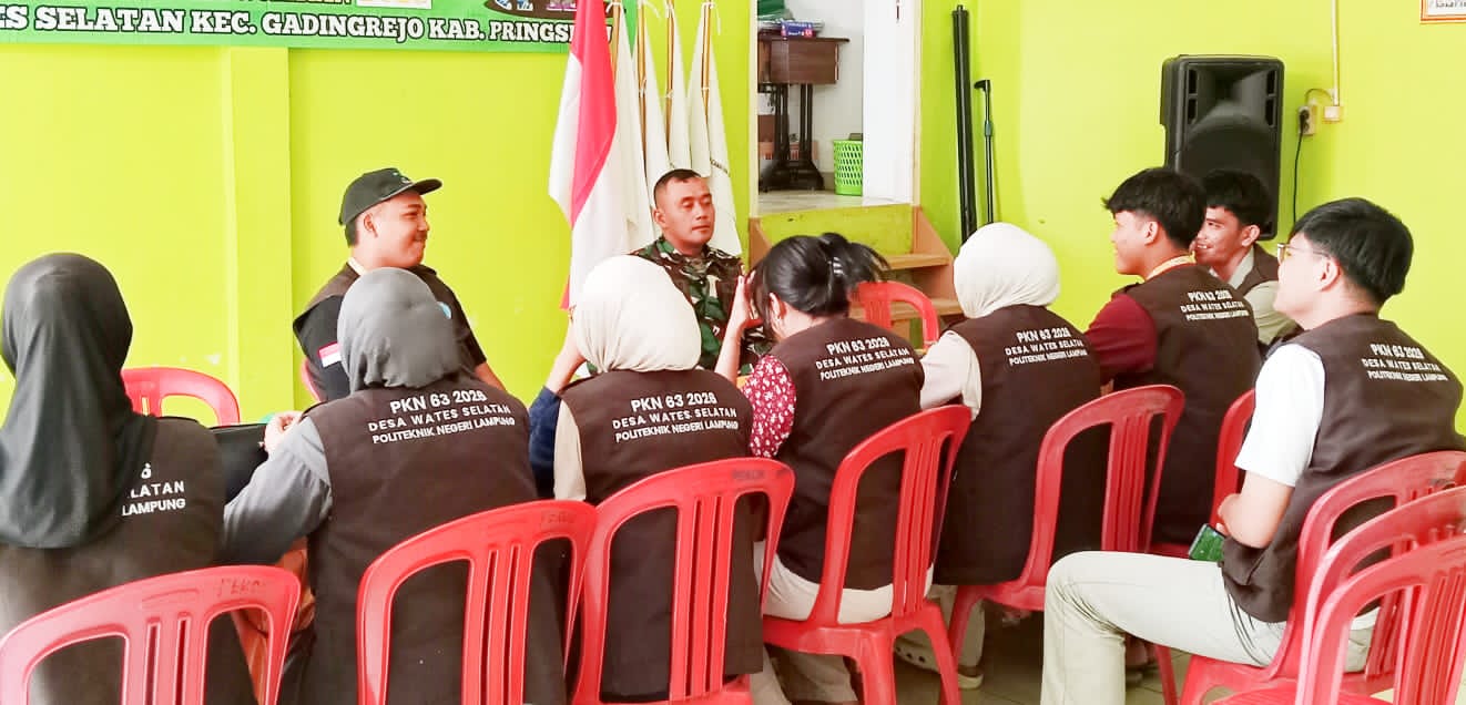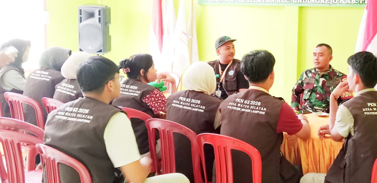 Pringsewu – Babinsa Koramil 424-07/Gadingrejo, Sertu Darlis Anggoro, menerima kedatangan mahasiswa Kuliah Kerja Nyata (KKN) yang akan melaksanakan pengabdian di desa binaan Pekon Wates, Kecamatan Gadingrejo, Kabupaten Pringsewu, Rabu (04/02/2026).