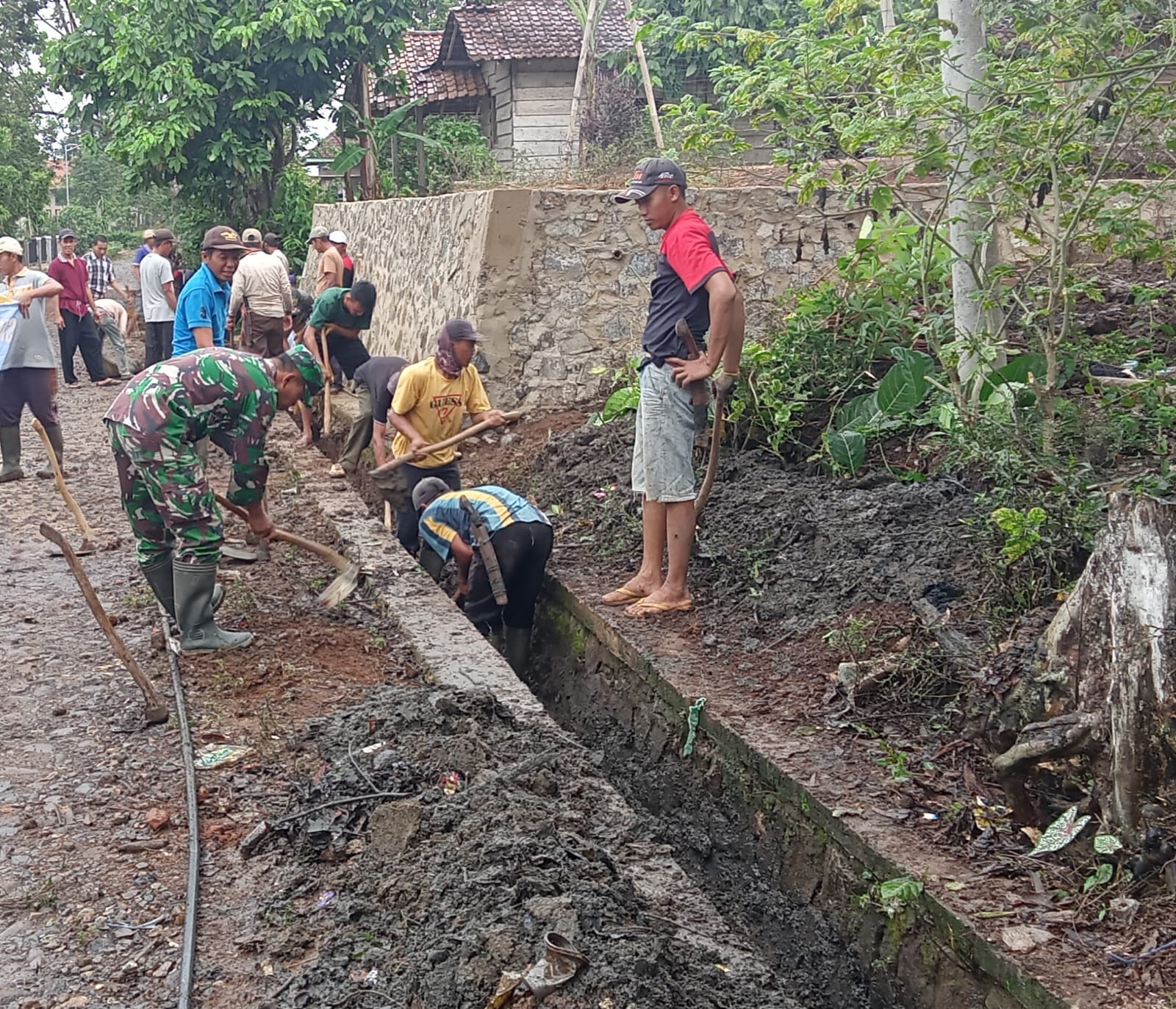 Babinsa Koramil 424-08/Pulanu Panggung Serda Markun bresama warga gotong royong membersihkan aliran air atau parit di Pekon Sumber muliya kec Pulau panggung, Kab. Tanggamus,Minggu (12/05/2024).