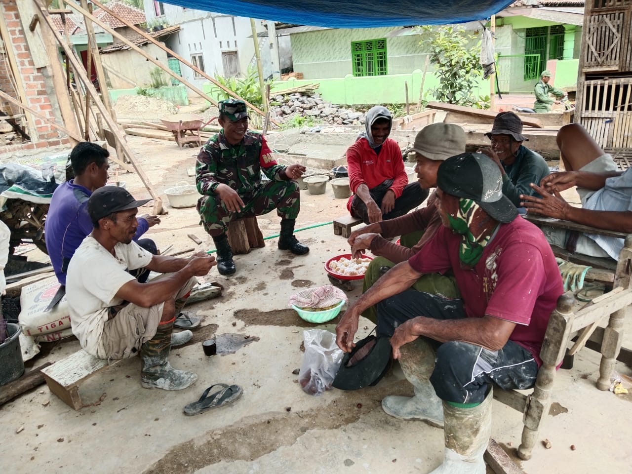 Babinsa Koramil 424 – 08/ Pulau Panggung, Sertu Hirwansah melaksanakan kegiatan Komunikasi Sosial (Komsos) dengan masyarakat para pekerja yang sedang bekerja membangun rumah salah satu warga di Pekon Air Abang, Kec. Ulu Belu, Kab. Tanggamus. Minggu (01/12/2024).