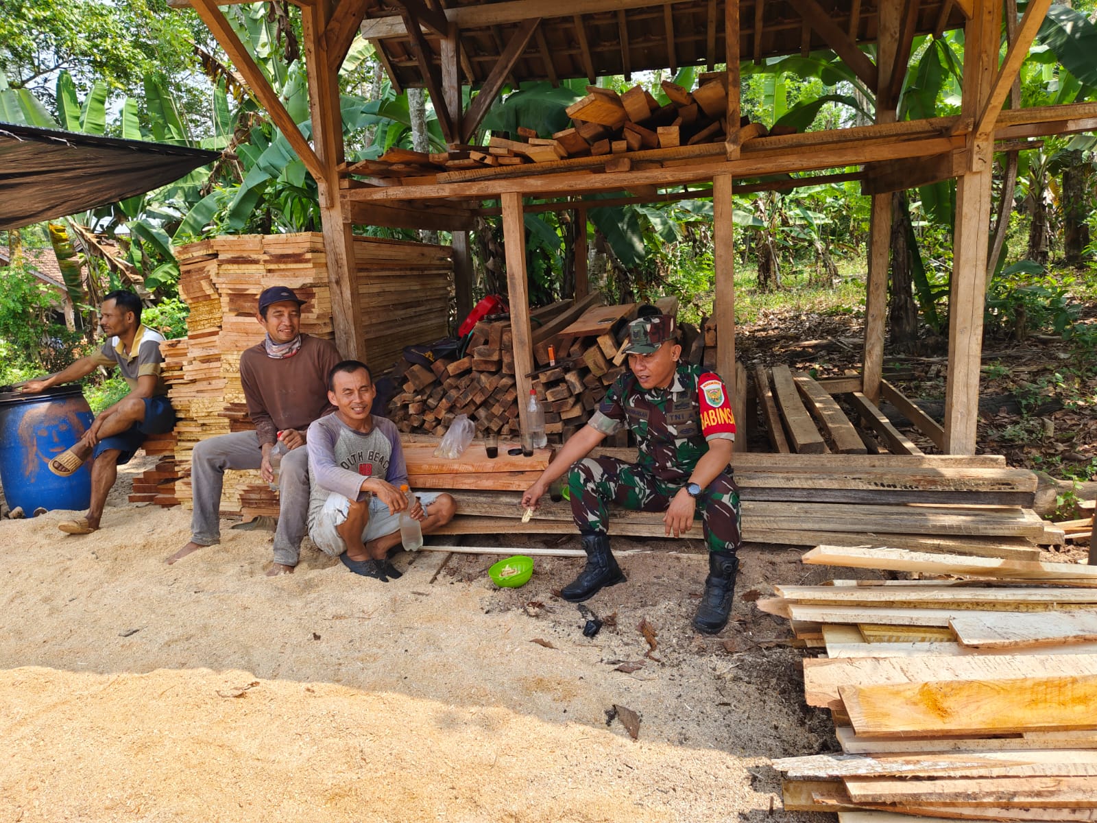 Kali ini Serka Herawansah melaksanakan komunikasi sosial dengan Junaedi (45 tahun), pemilik Panglong Kayu yang ada di Pekon Datar Lebuay.