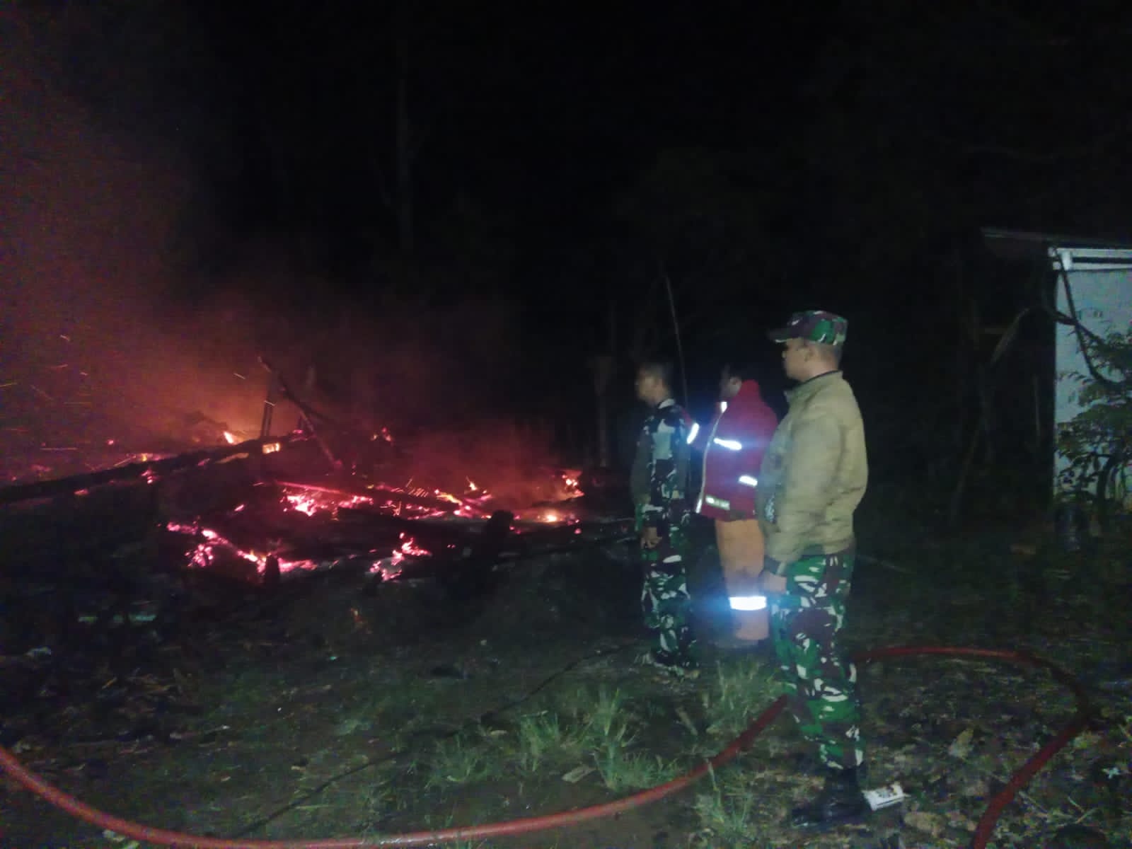 Melihat kejadian tersebut, pemilik rumah bersama anggota keluarga segera menyelamatkan diri dan meminta pertolongan warga sekitar. Babinsa Sertu Markun yang mendapat informasi kejadian tersebut langsung mendatangi lokasi dan bersama warga berupaya memadamkan api menggunakan peralatan seadanya, guna mencegah api merembet ke rumah warga lainnya.
