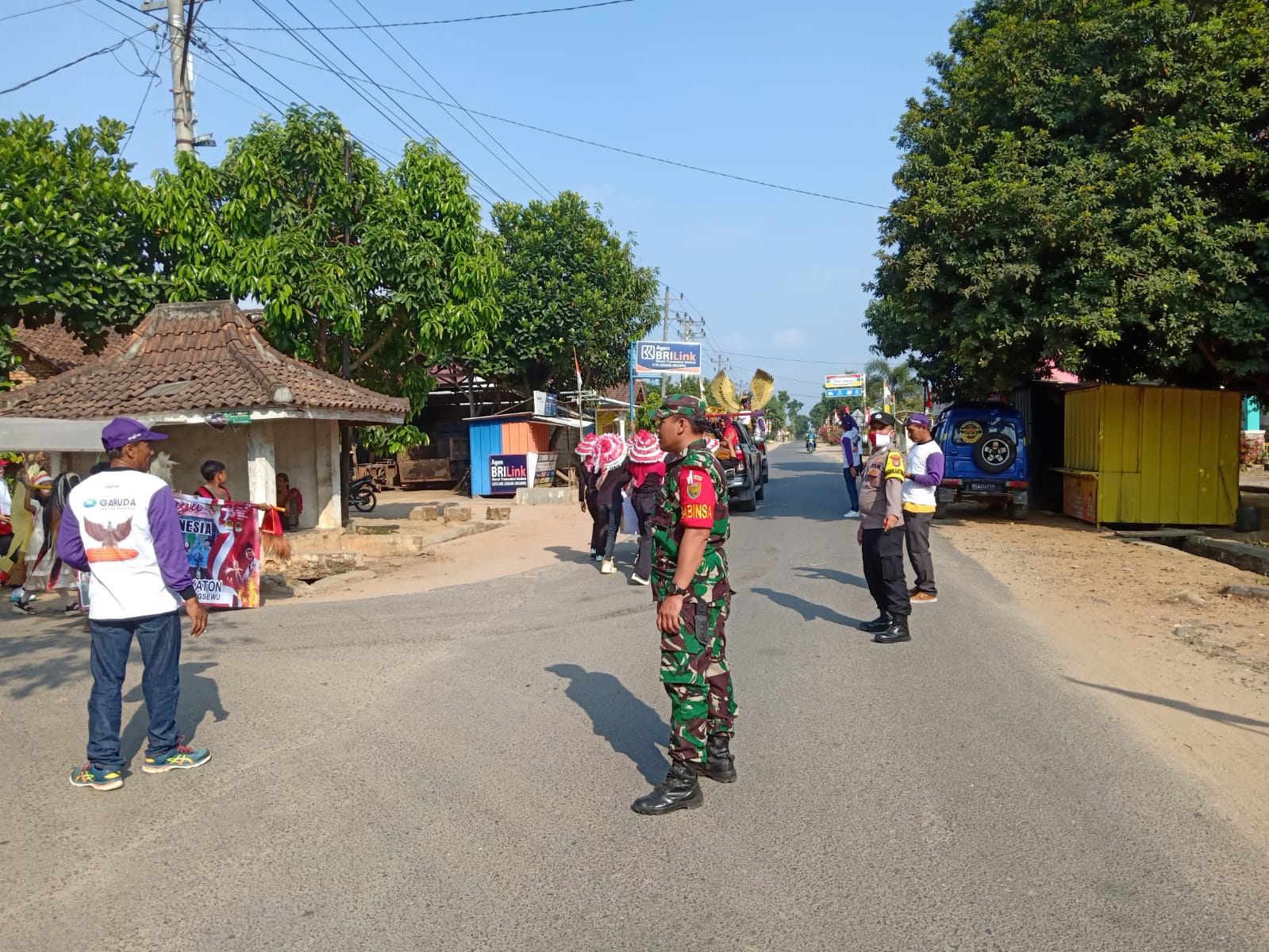 Babinsa Koramil 424-09/Sukoharjo Serda Wardoyo melaksanakn pengamanan kegiatan lomba karnaval dan jalan sehat dalam rangka HUT Kemerdekaan RI ke 78 di Pekon Srikaton Kec Adiluwih Kab. Pringsewu, Kamis (24/08/2023.