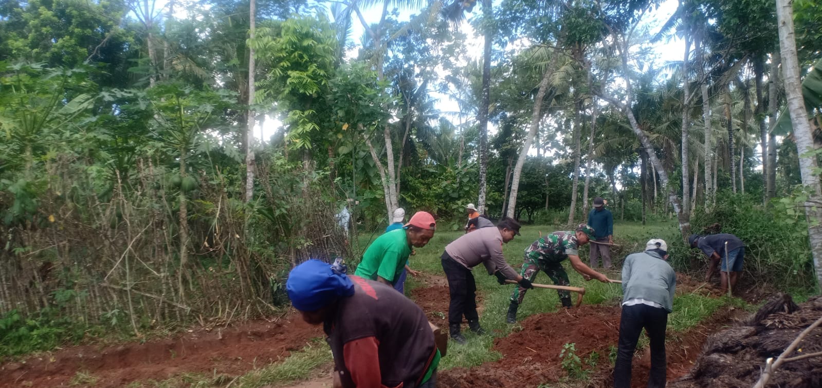 Babinsa Koramil 424-09/Sukoharjo Gotong-Royong Buka Badan Jalan Menuju Perkebunan