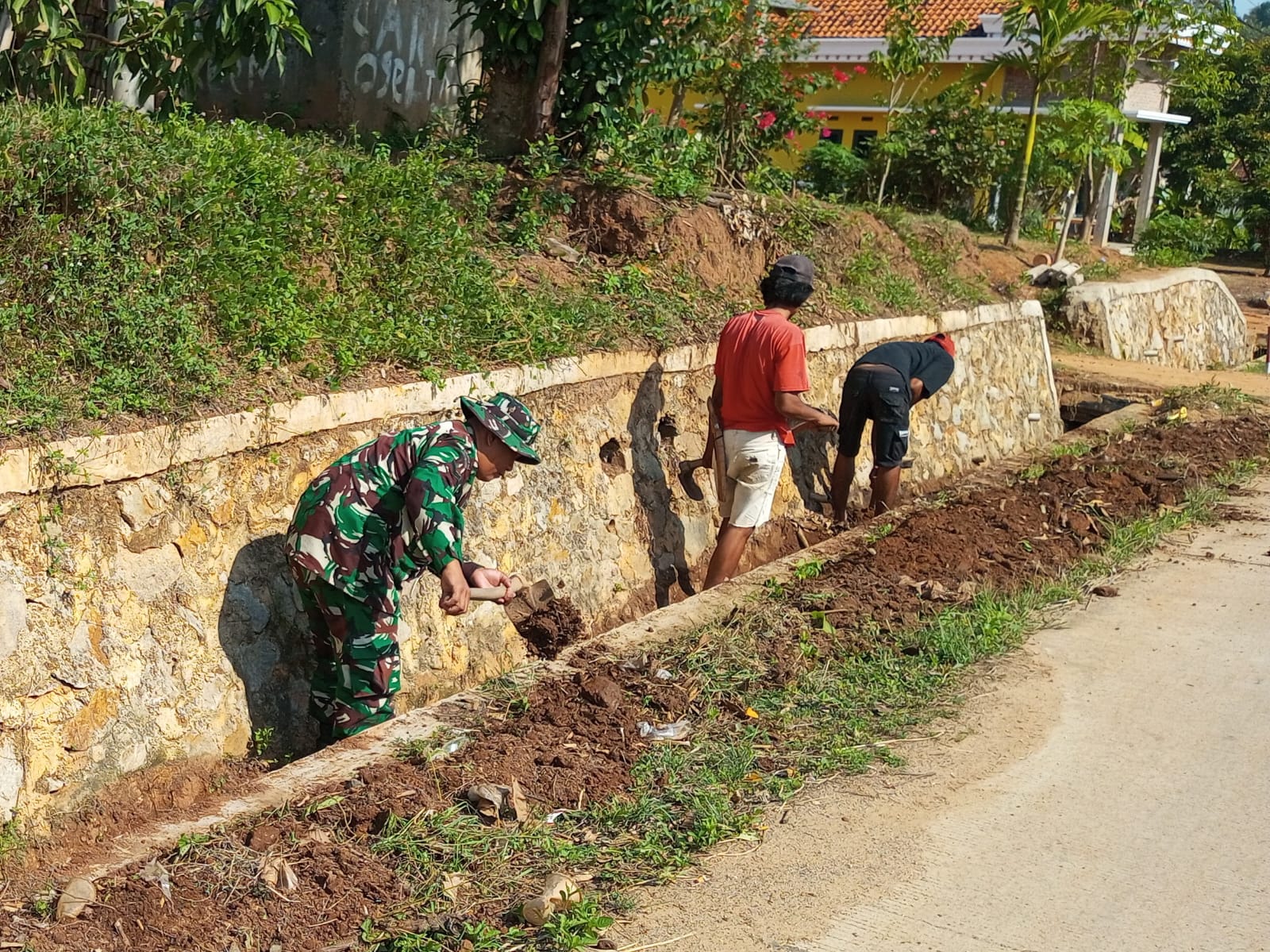 Saat ditemui di lokasi, Babinsa Sertu Hardoyo mengatakan, Kegiatan ini dilakukan secara bergotong – royong bersama warga. Menurutnya sikap Gotong-royong merupakan karakter dan kepribadian masyarakat Indonesia yang harus terus dilestarikan.