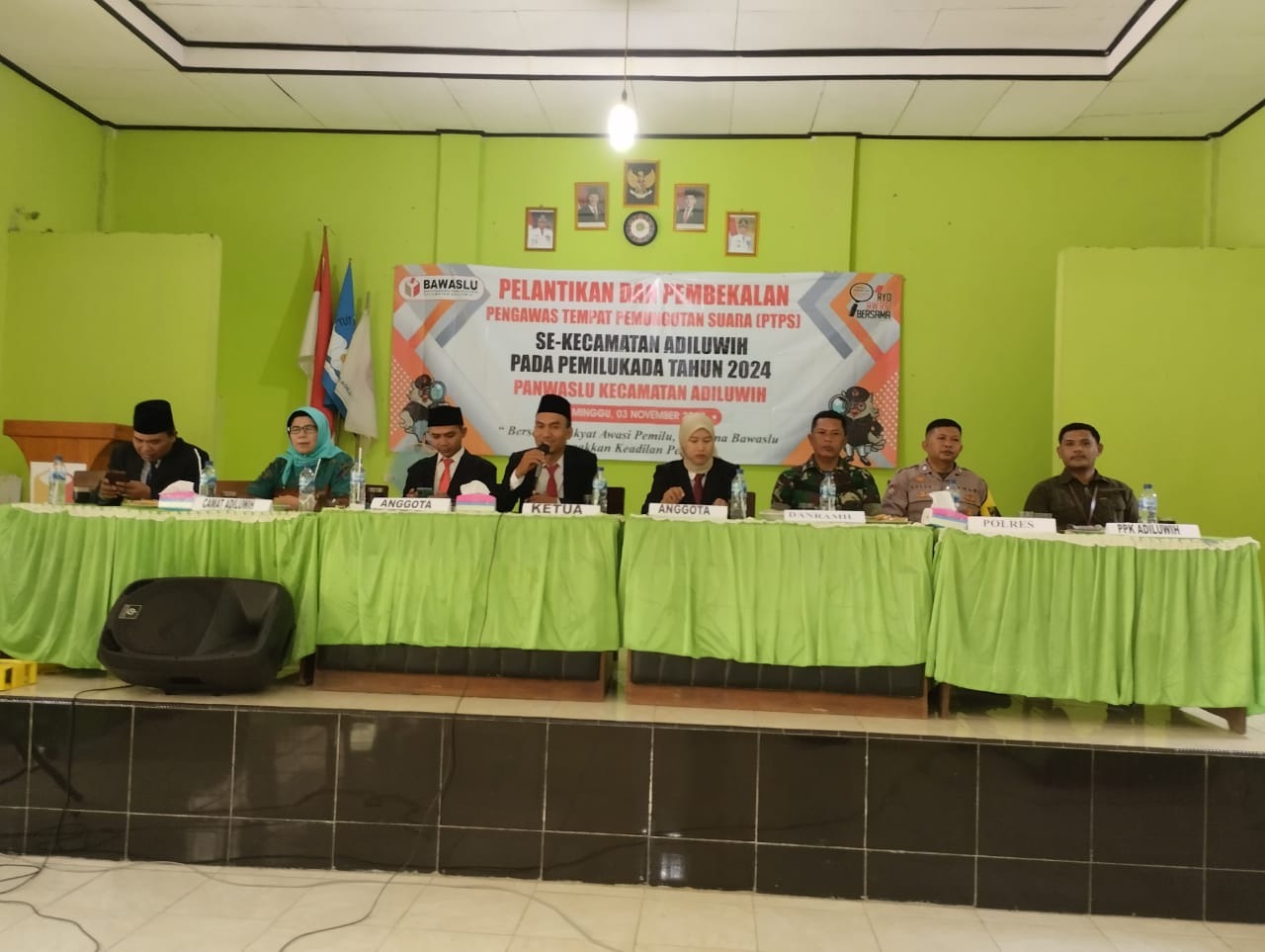 “Dalam hal ini dilakukan pembacaan Surat Keputusan Panwaslu Kecamatan Adiluwih tentang penetapan pengawas tempat pengutan suara,” ungkap Pelda Hermawan.