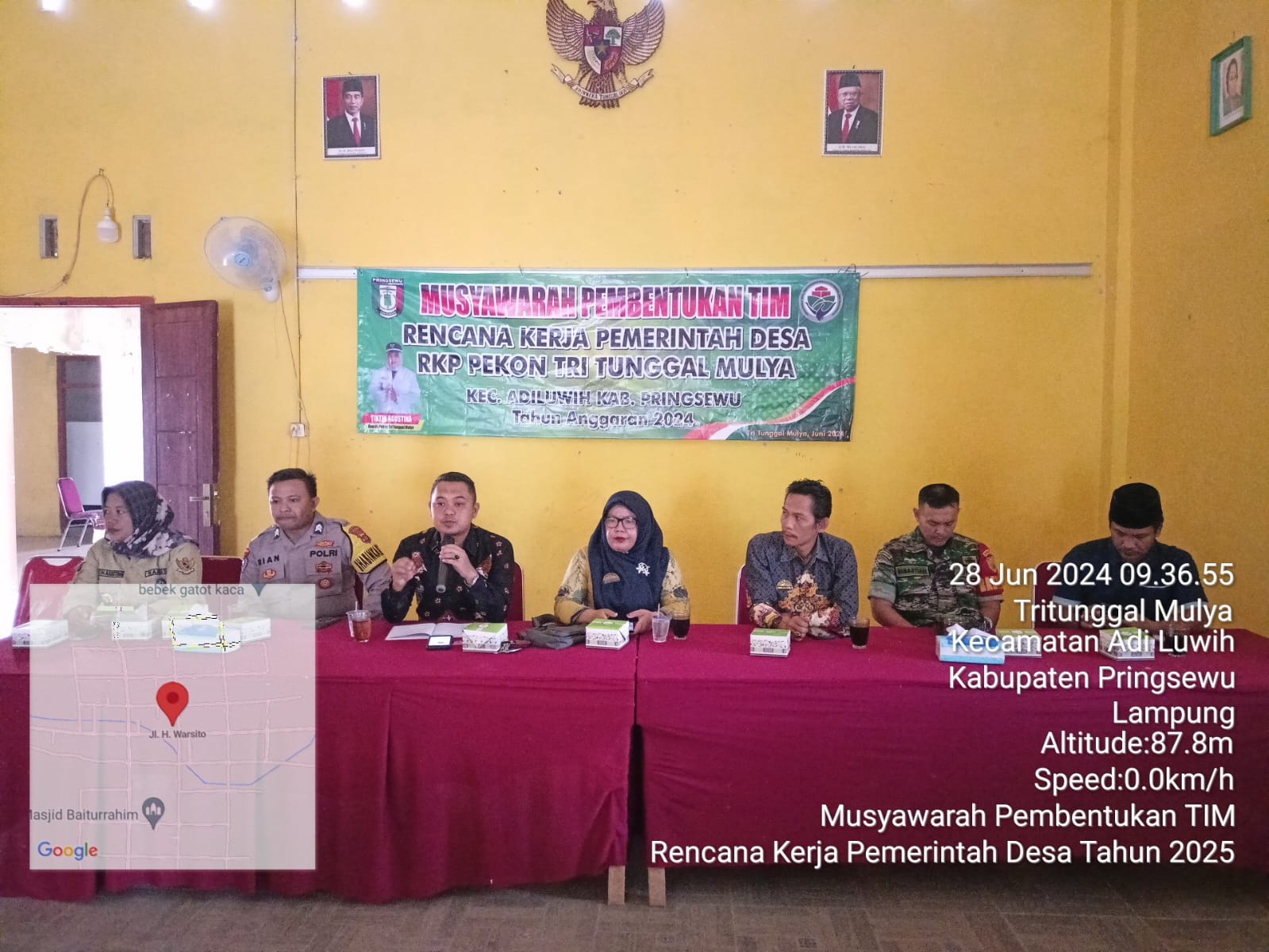 Babinsa Koramil 424 – 09/ Sukoharjo, Serda Subastian, menghadiri acara musyawarah dalam rangka Penyusunan Rencana Kerja Pemerintah (RKP) di Pekon Tri Tunggal Mulya, Kec. Adiluwih, Kab. Pringsewu. Jum’at (28/06/2024).