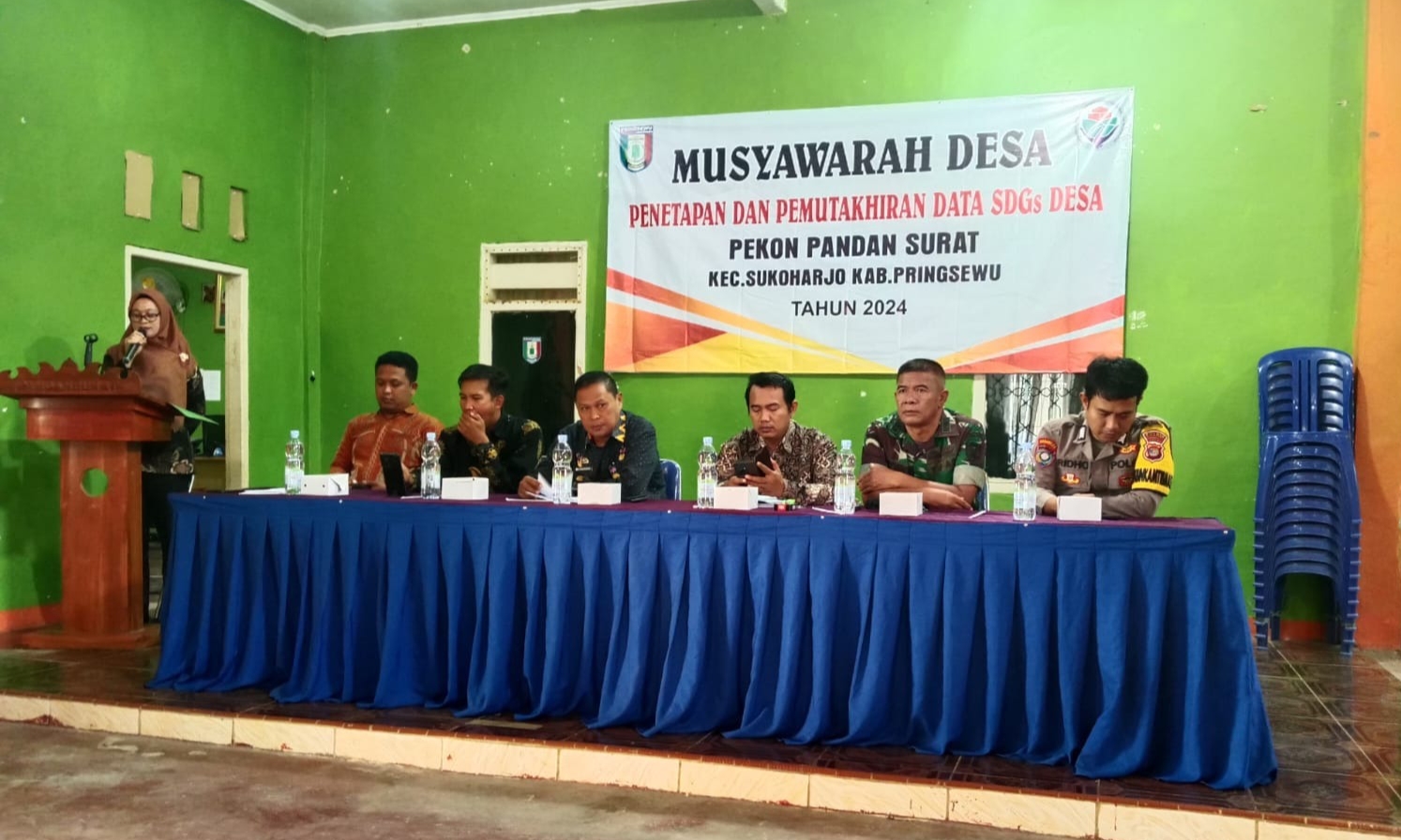 Babinsa Koramil 424 – 09/ Sukoharjo, Pelda Edi Wibowo menghadiri giat Rapat Musyawarah Penetapan Hasil Pemutakhiran Data SDGs acara sosialisasi dan Pembentukan kelompok kerja (Pokja) Relawan Pemutakhiran Data Indeks Desa Membangun (IDM) berbasis SDGs (Sustainable Development Goals) Pekon Pandan Surat yang bertempat di Balai Pekon Pandan Surat, Kec. Sukoharjo, Kab. Pringsewu. Kamis (03/10/2024).