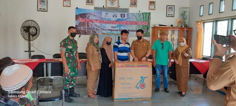 Pringsewu – Babinsa Koramil 424-09/Sukoharjo Kodim 0424/Tanggamus Kopda Junet Kusmanto melaksanakan kegiatan pendampingan penyerahan bantuan Kursi Roda Warga pekon Kuta waringin Kec. Adiluwih Kab. Pringsewu, Rabo (27-04-2022)