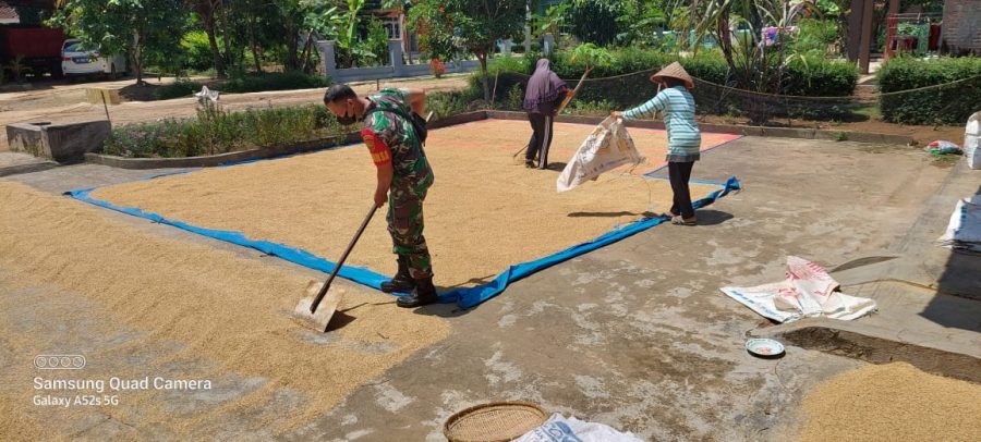 Pendampingan kepada petani tidak hanya sampai selesai di masa panen saja, tetapi masih terus dilakukan sampai penjemuran padi pun Babinsa juga hadir membantu para petani di desa binaannya, sebagaimana dilakukan Kopda Junet ikut serta membantu petani warga desa binaannya, saat melakukan penjemuran padi hasil panen.