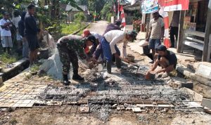 Pringsewu – Babinsa Koramil 424-10/Pardasuka, Serda Saifudin, melaksanakan kegiatan gotong royong pengecoran gorong-gorong jalan bersama warga binaan di Pekon Wargomulyo, Kecamatan Pardasuka, Kabupaten Pringsewu, Sabtu (06/12/2025).