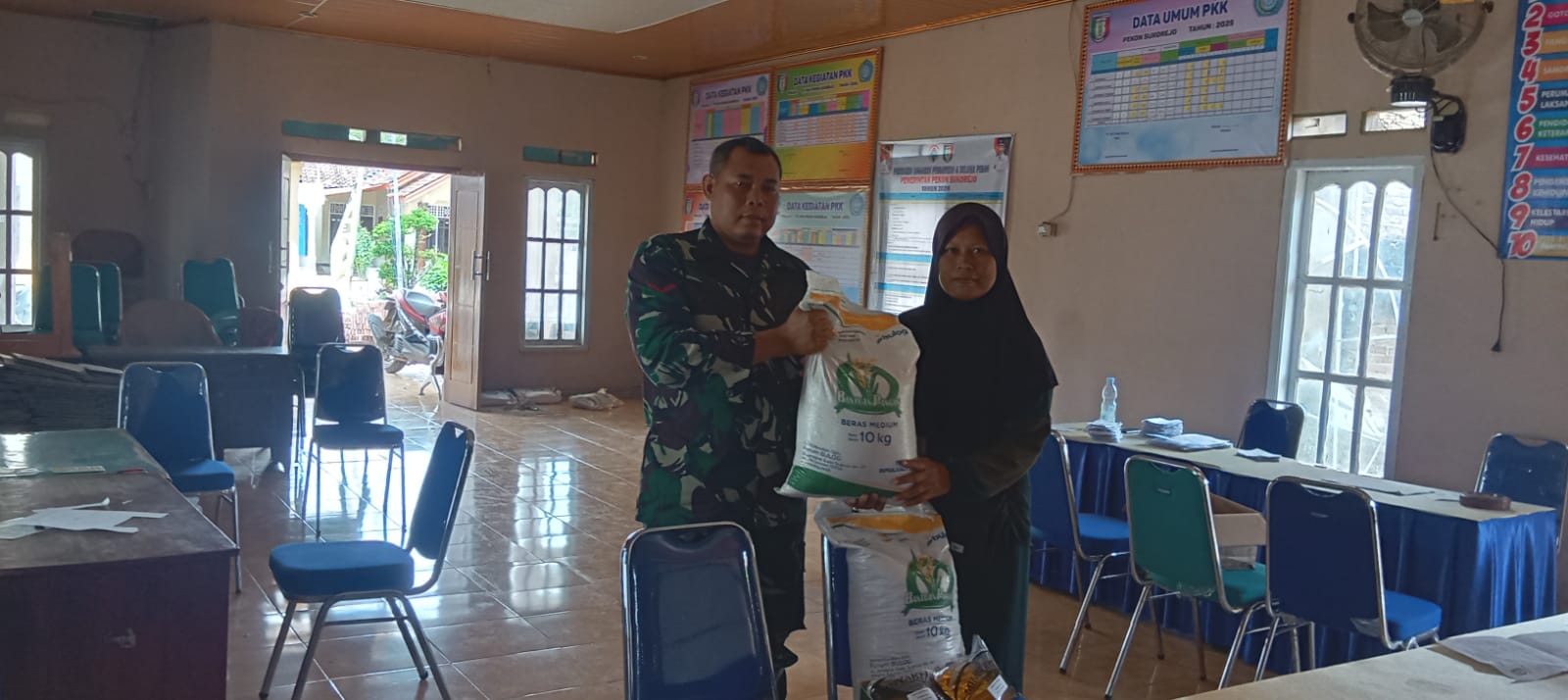 Kegiatan pendampingan ini dilakukan untuk memastikan proses penyaluran bantuan berjalan tertib, lancar, serta tepat sasaran kepada warga yang berhak menerima. Kehadiran Babinsa juga sebagai bentuk dukungan TNI dalam membantu pemerintah daerah menyalurkan bantuan bagi masyarakat.